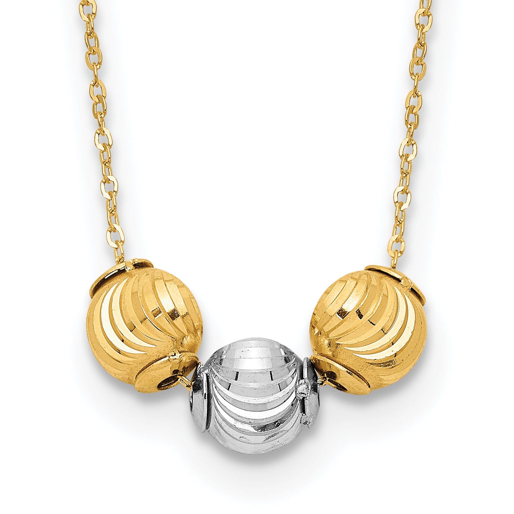 14K Two Tone Gold Polished Finish Diamond Cut Hollow 3-Beads Pendants in a 17-inch Cable Chain Necklace Set