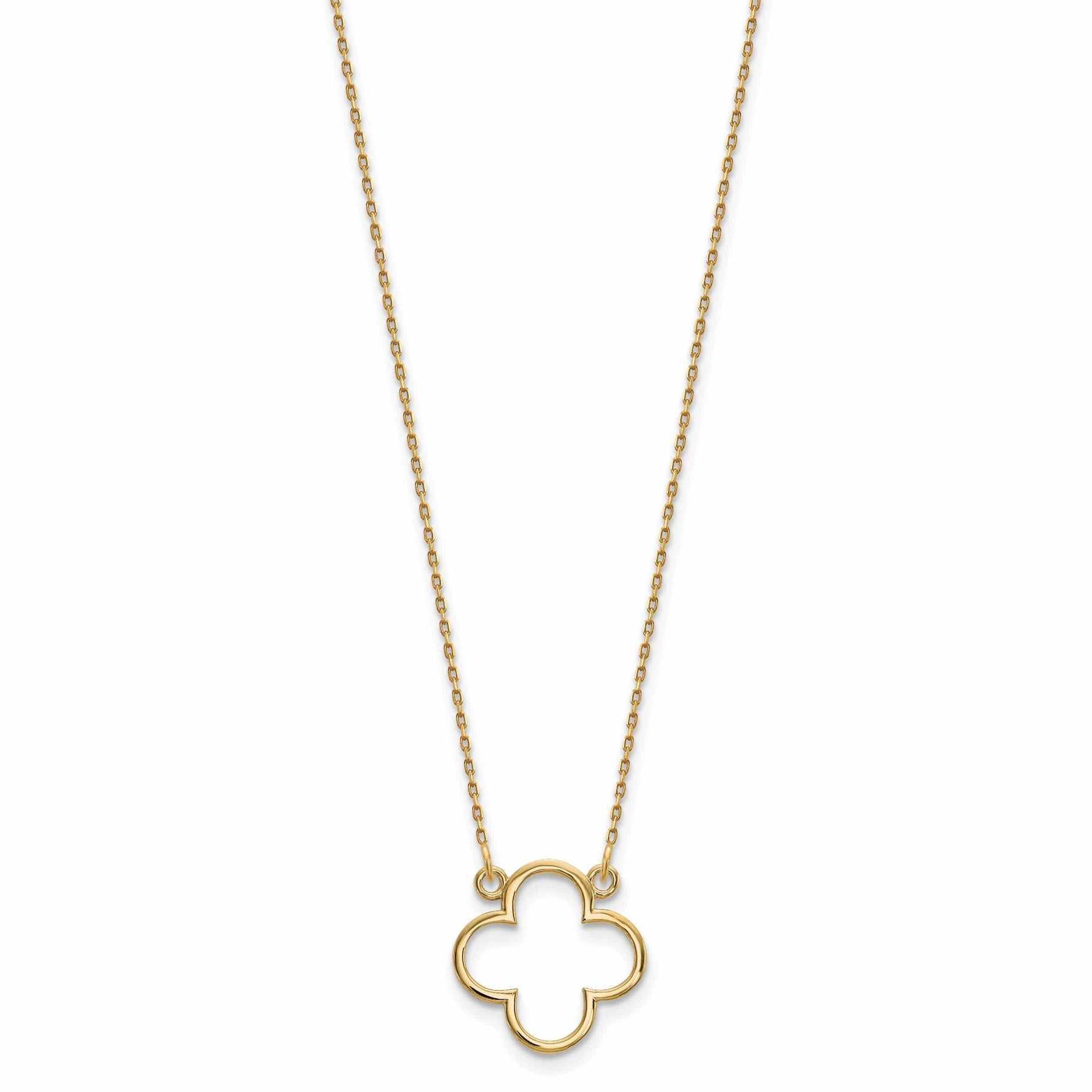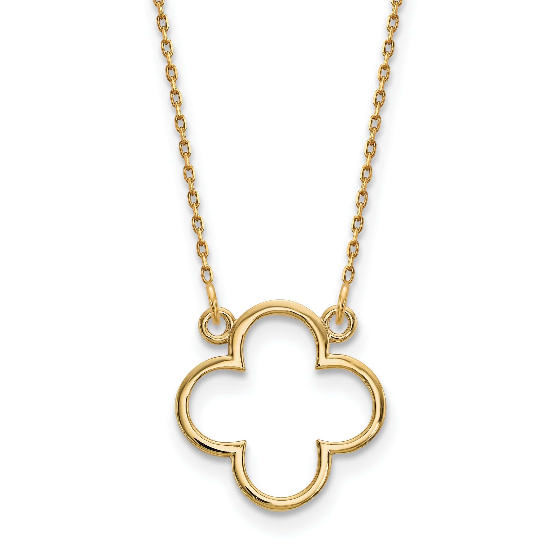 This necklace set is the perfect accessory for any occasion, from everyday wear to special events. It also makes a thoughtful gift for a loved one to show them how much they mean to you. Treat yourself or someone special to the luxury and elegance of this stunning 14k Yellow Gold Polished Diamond Cut Finish Quatrefoil Pendant Design Necklace Set.