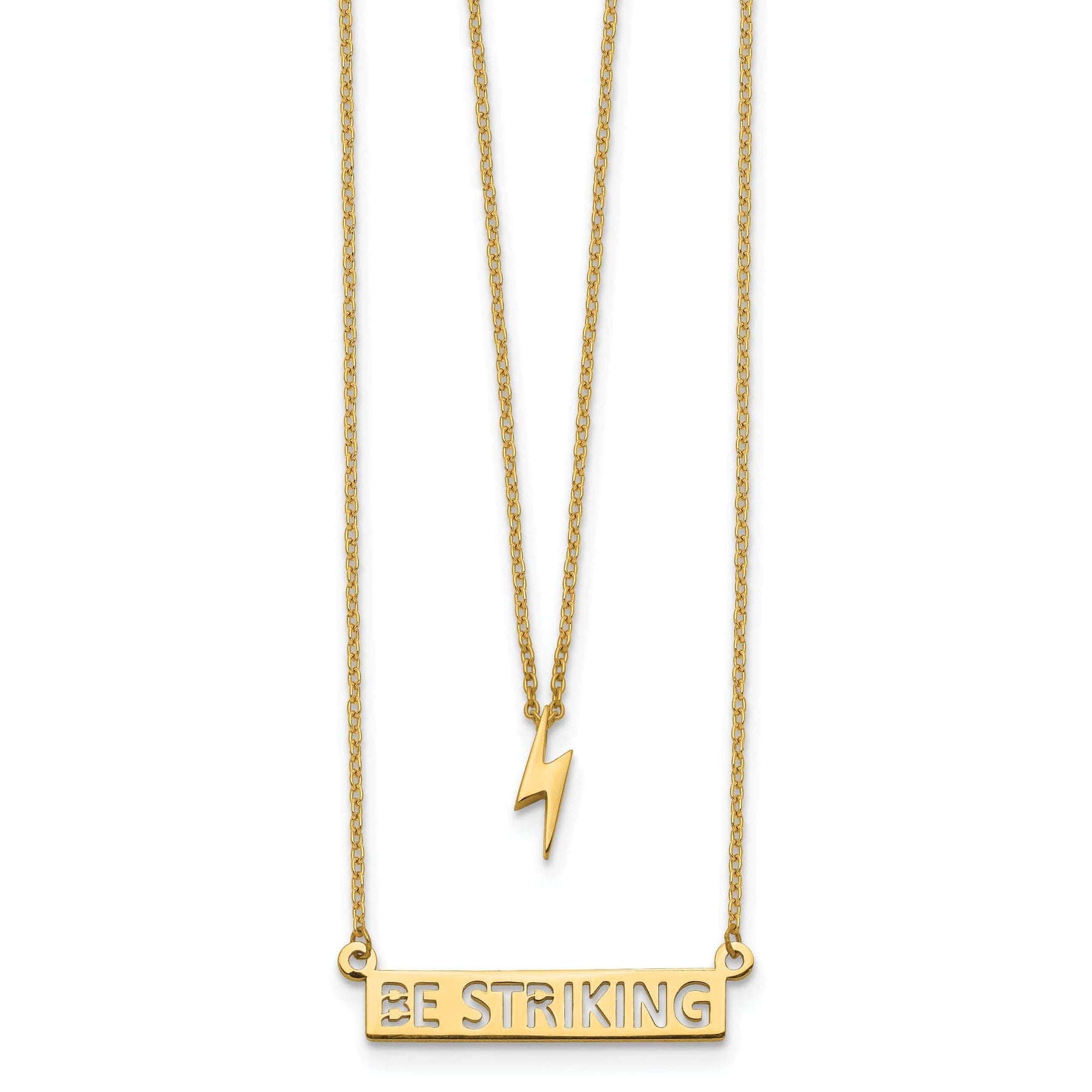 14k Yellow Gold Polished Finish Solid Two-Strand Lightning & Be Striking Bar Design in a 17-inch Cable Chain Necklace Set