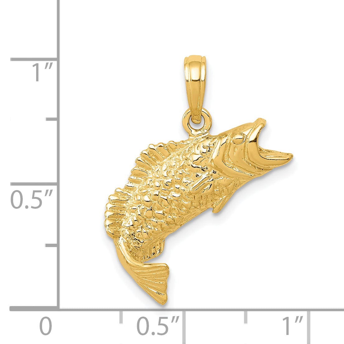 Lovely Rita's Pendants & Charms 14k Yellow Gold Solid Polished Textured Finish Bass Fish Jumping Charm Pendant