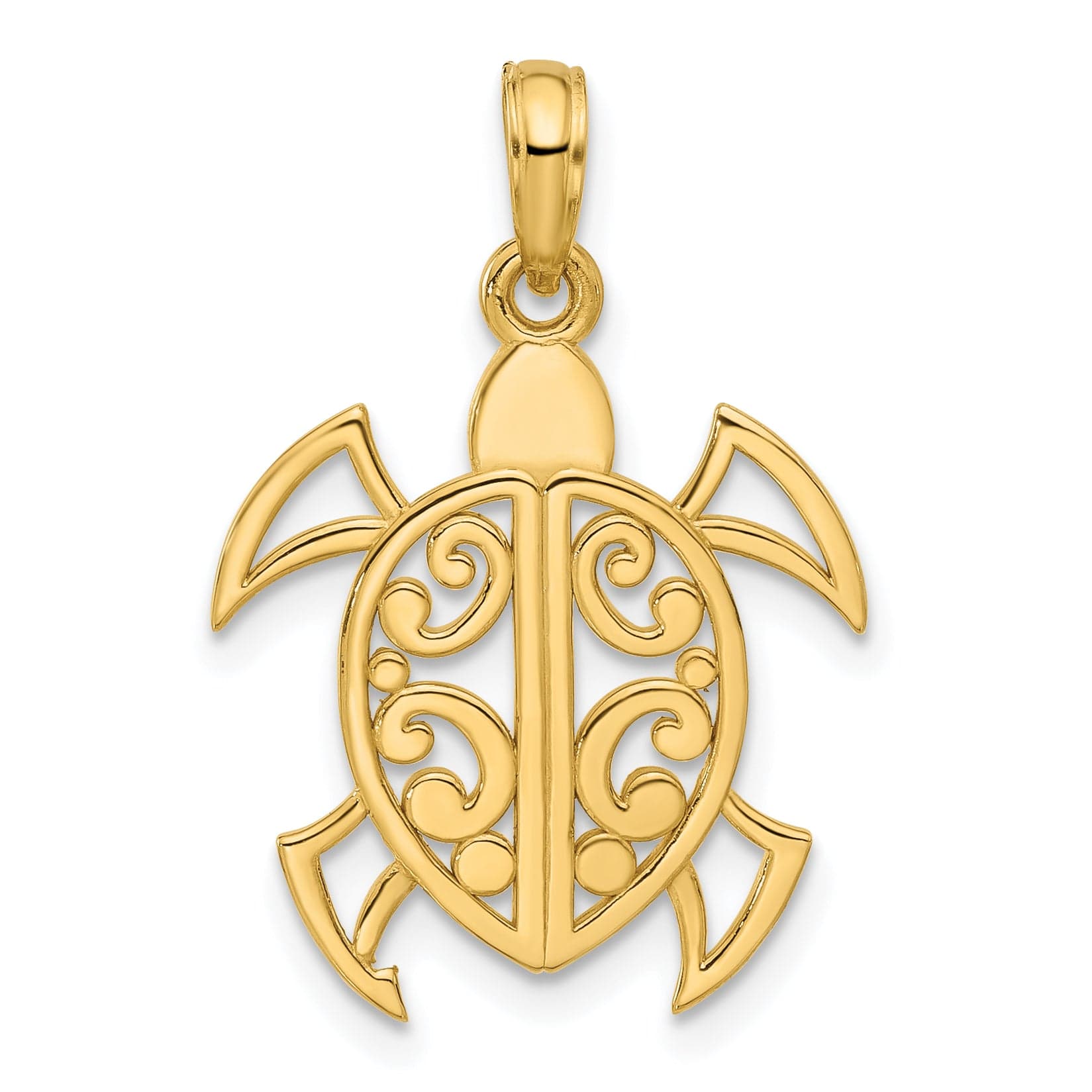 14k Yellow Gold Fancy Abstract Turtle Design Pendant