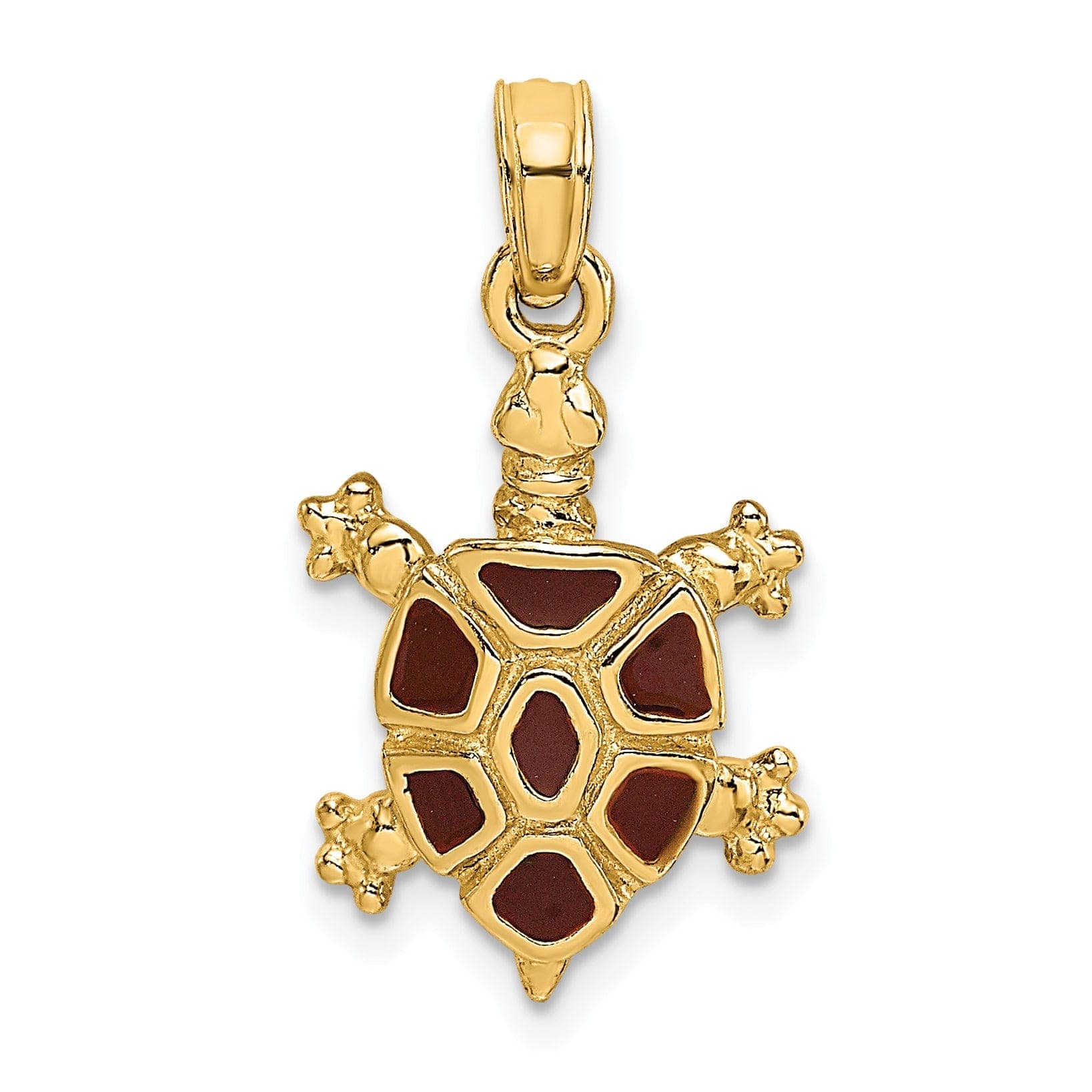 14k Yellow Gold with Brown Enamel Open Back Solid Casted Polished Finish Land Turtle Charm Pendant