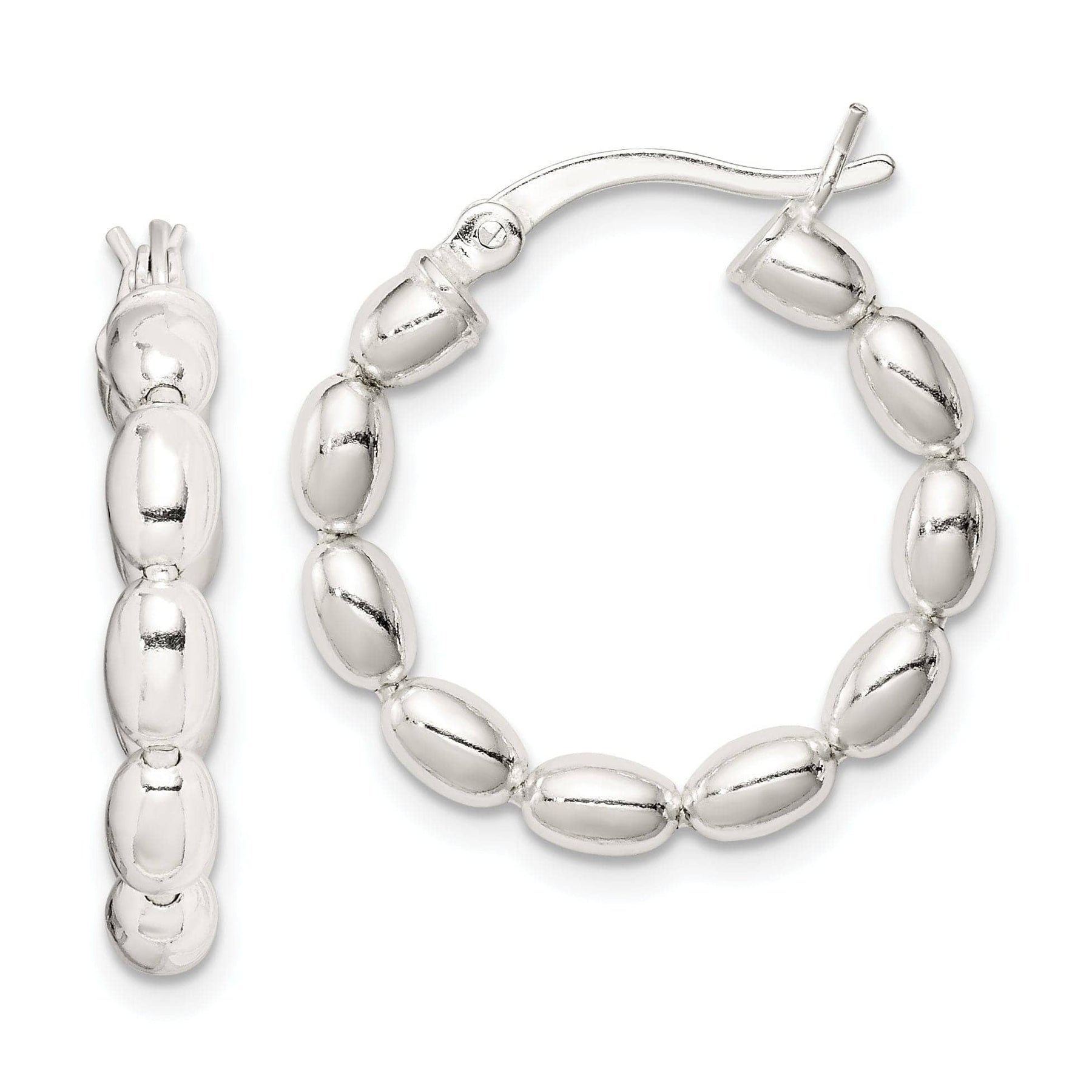 Whether you're dressing up for a special event or simply adding a touch of glamour to your everyday outfits, these Sterling Silver Polished Beaded Hoop Design Earrings are the perfect choice. Treat yourself or surprise a loved one with these exquisite earrings that are sure to become a beloved staple in any jewelry collection.