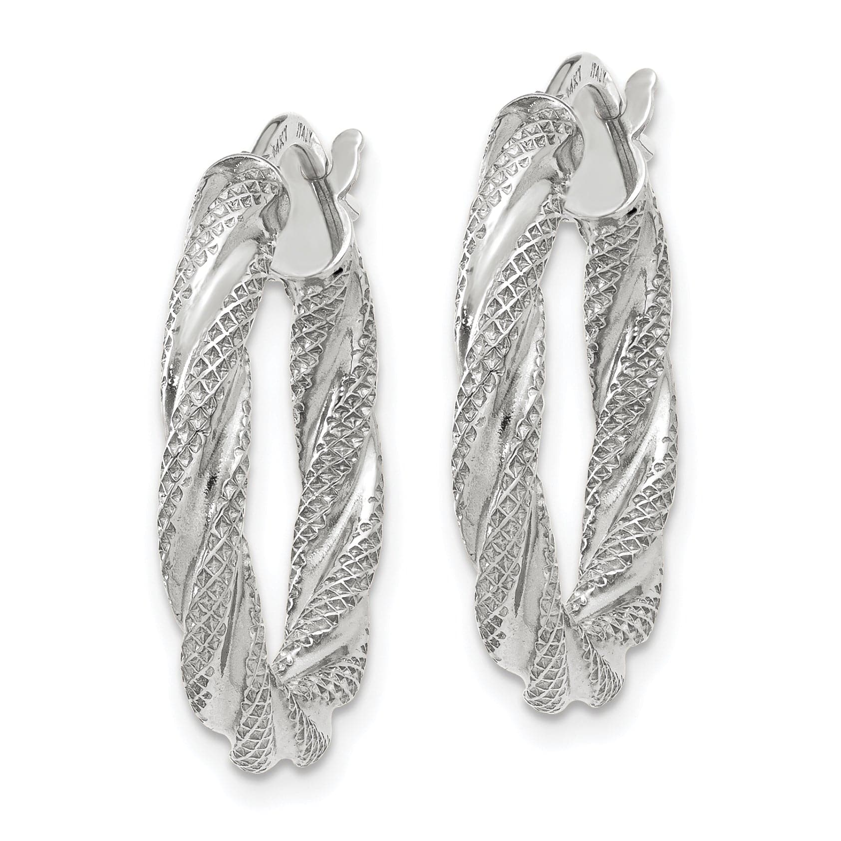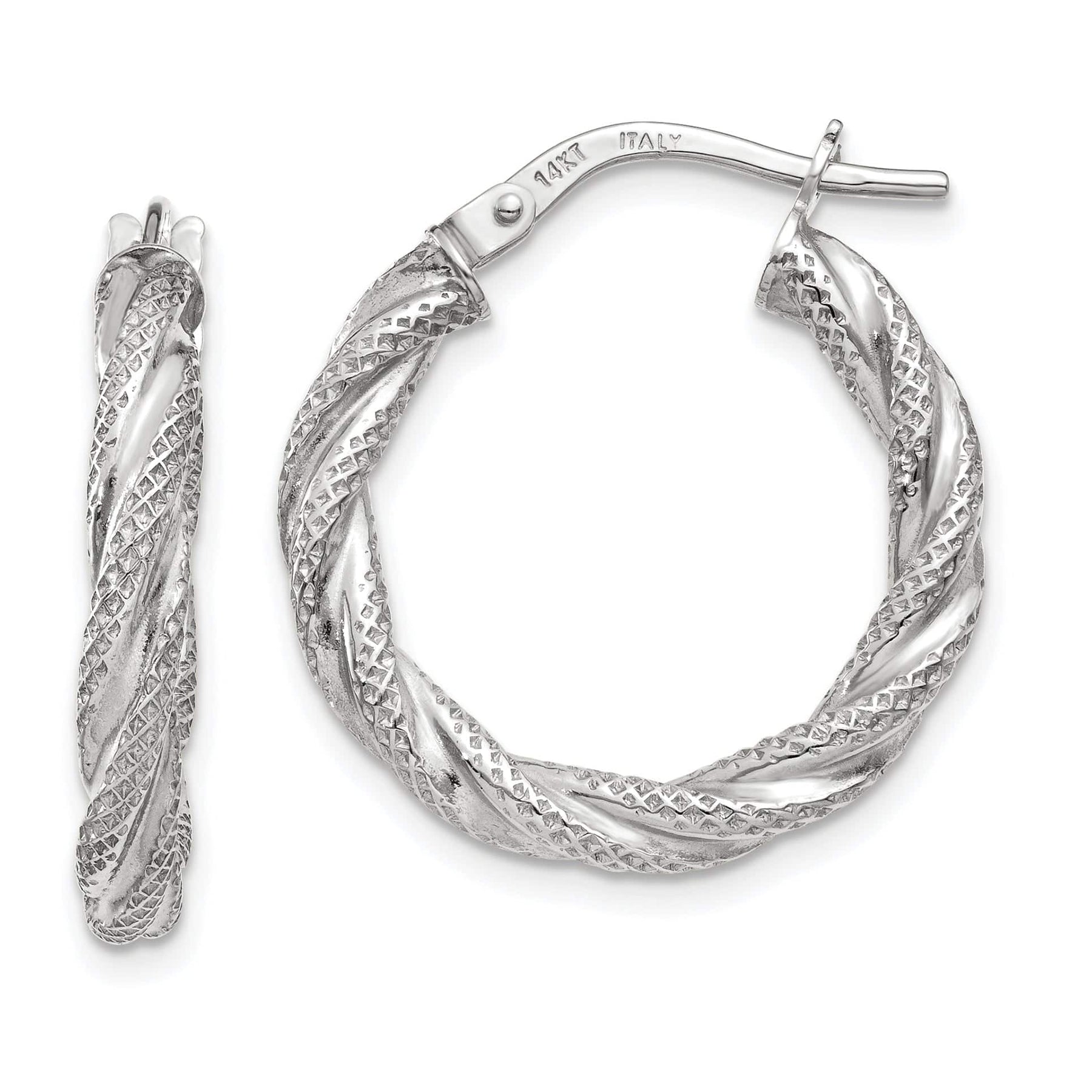 14K White Gold Bold Textured 20.5mm Twisted Hoops