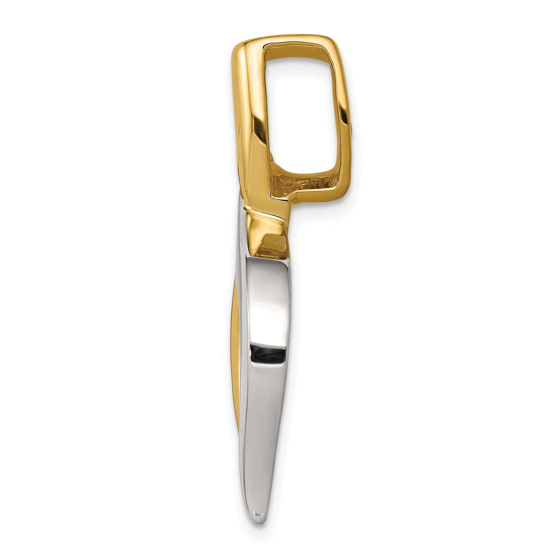 Whether you're dressing up for a special occasion or adding a touch of glamour to your everyday style, this pendant is sure to make a statement. Treat yourself or someone special to this beautiful piece of jewelry that is sure to be cherished for years to come. Order yours today and elevate your look with the 14k Two Tone Gold Solid Polished Finish Swirl Fancy Design Omega Slide Pendant.