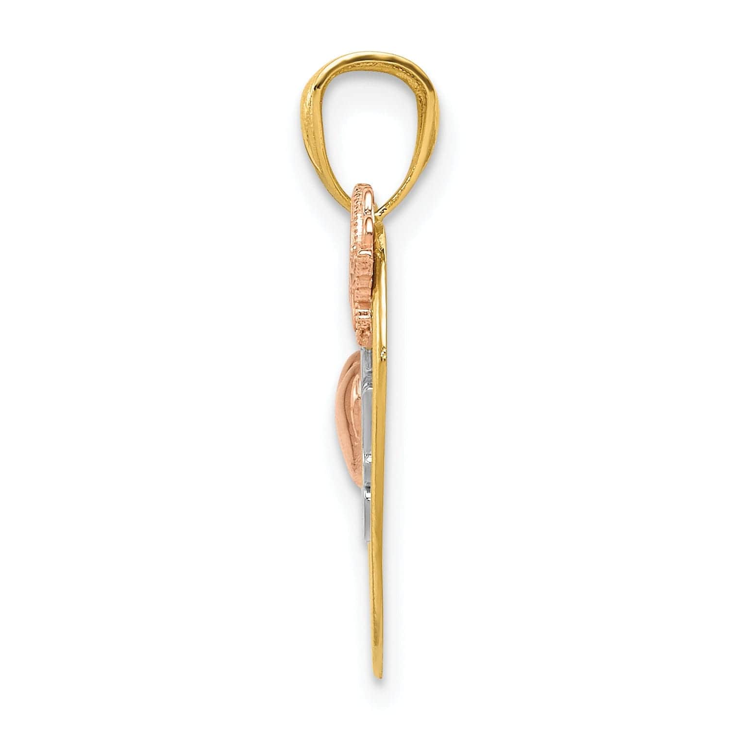 Introducing our stunning 14k Yellow Rose Gold I Love You in Heart Charm Pendant. This charming piece is crafted from solid texture polished finish 14k yellow rose gold, creating a luxurious and elegant look. The pendant features a beautiful design of a heart containing the sweet sentiment "I Love You" with a delicate butterfly accent.