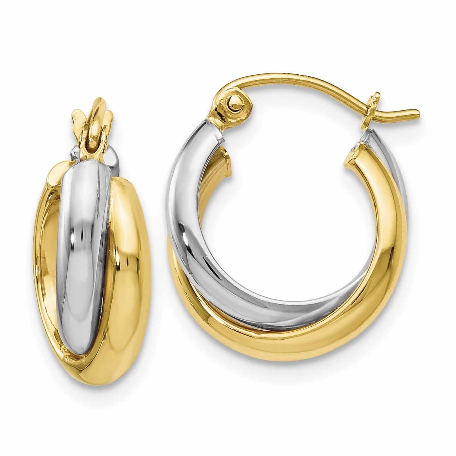 10kt Two Tone Gold Polished Hinged Twisted Hoop Earrings