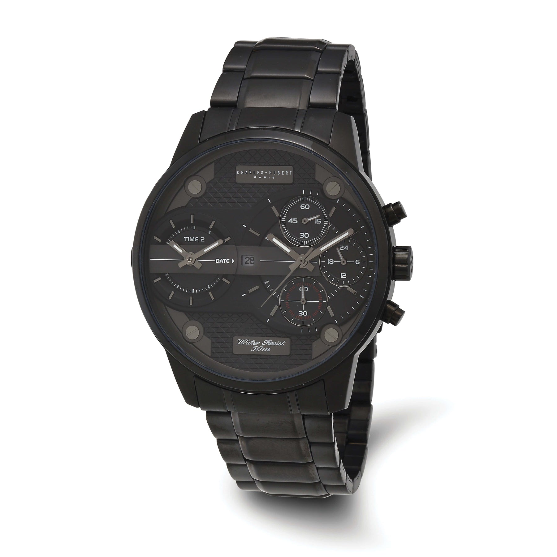 Charles Hubert Black Stainless Chronograph Dual Time Ti Band Watch