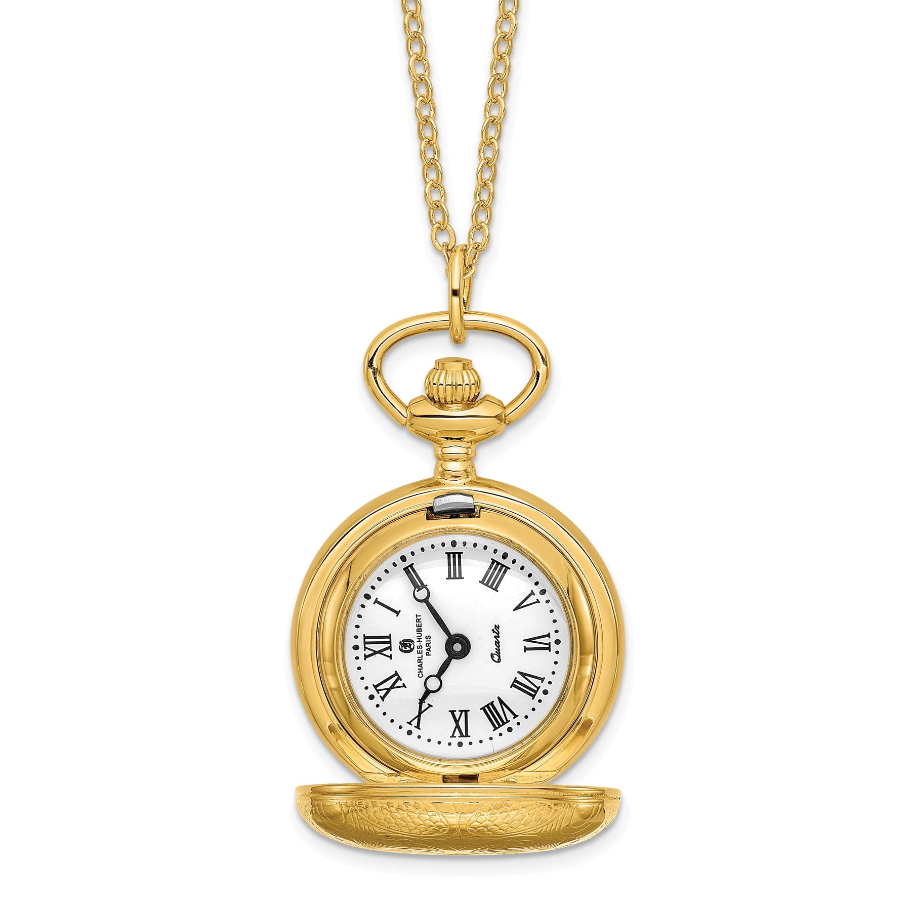 Charles Hubert Gold-finish Scroll Design Pendant Brass Band Watch