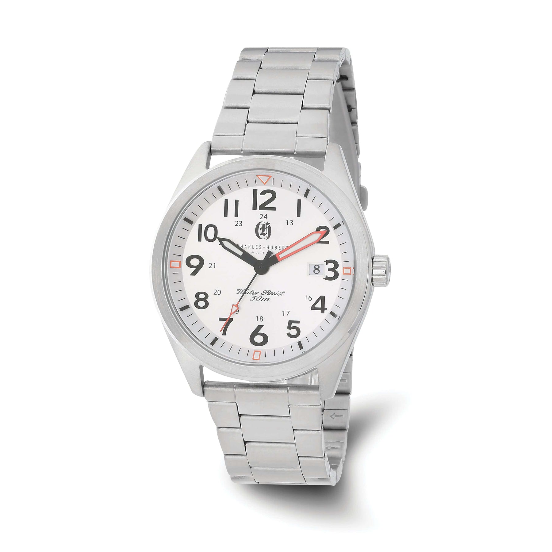 Charles Hubert Modern SS White Dial with Date Polished Watch