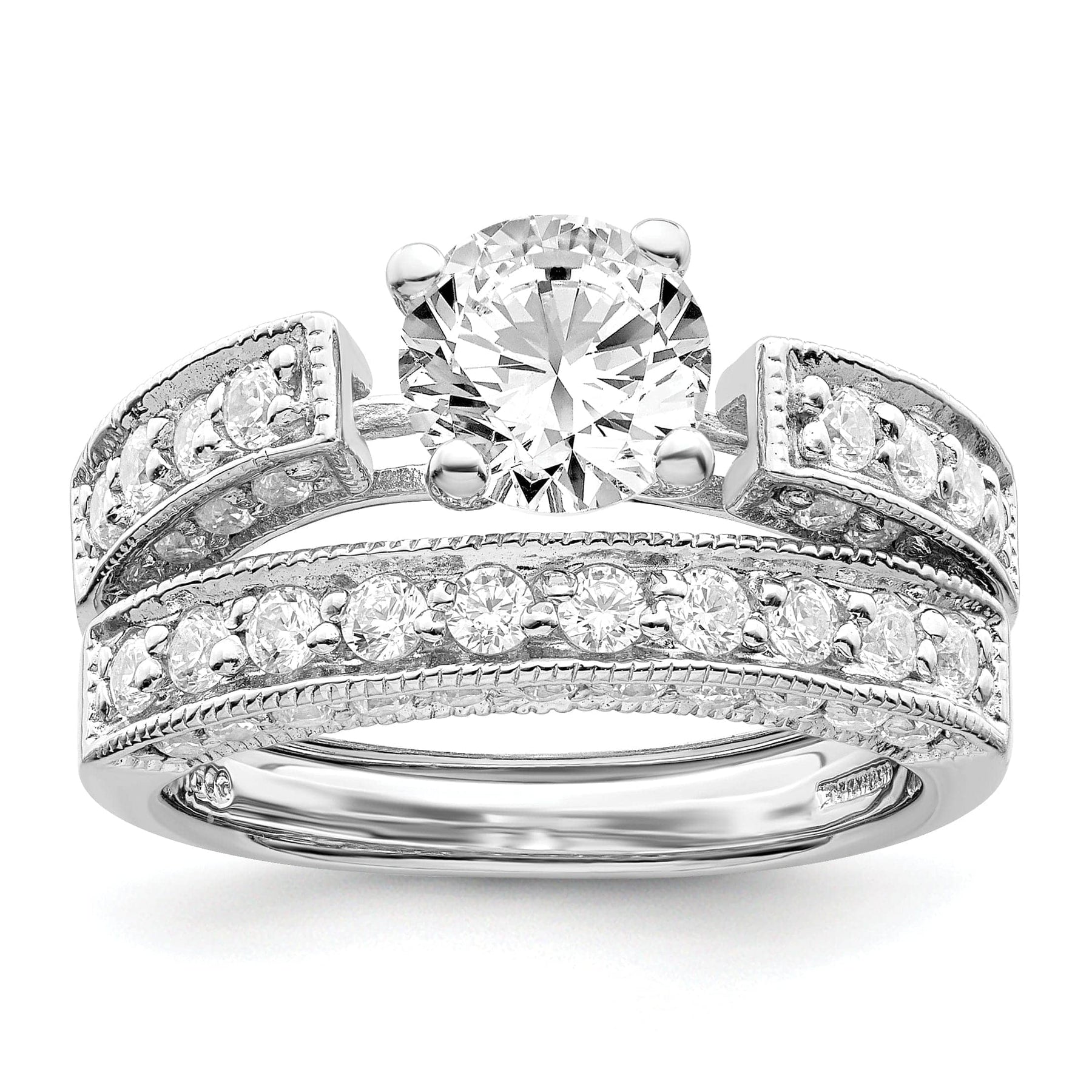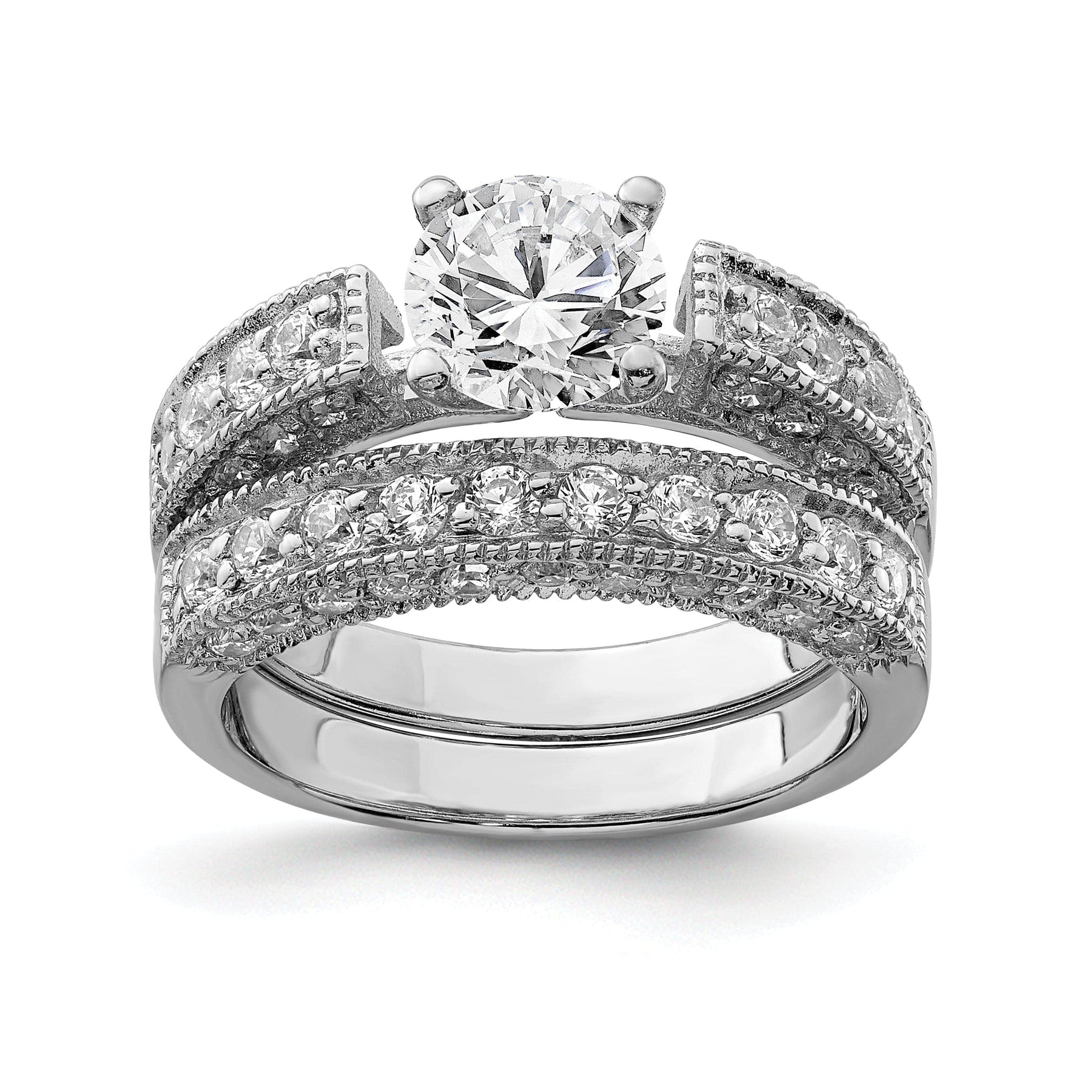 These rings are available in a variety of sizes to ensure the perfect fit for any finger. Whether you're looking for a dazzling wedding set, a stylish accessory for a special occasion, or a glamorous everyday ring, this Sterling Silver 2-Piece Cubic Zirconia Wedding Set Ring is the perfect choice. Add it to your collection today and enjoy the timeless beauty and elegance it brings.