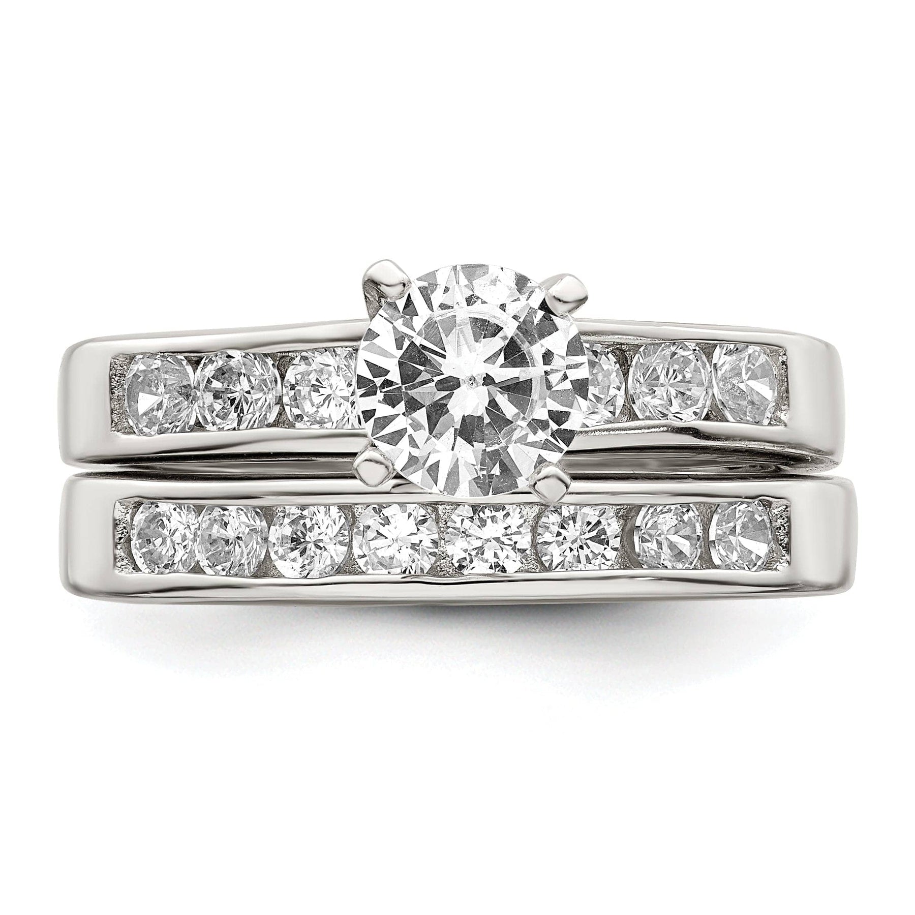 Elegance and sophistication meet in this stunning Sterling Silver 2-Piece Cubic Zirconia Wedding Set Ring. This exquisite set includes two beautifully crafted band rings that are designed to complement each other perfectly.