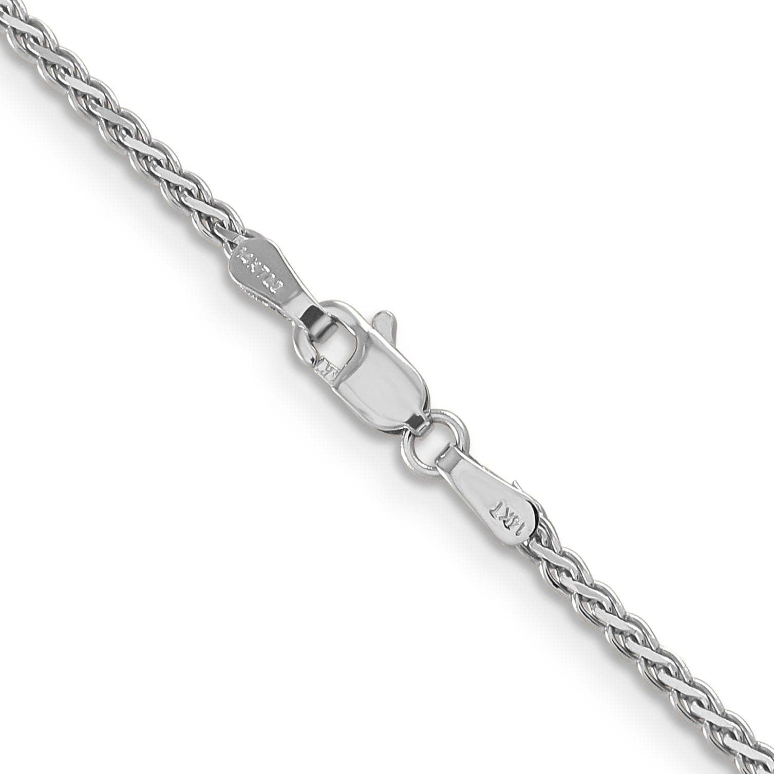 The intricate flat wheat design of this chain adds texture and depth, making it a truly eye-catching accessory. The lobster clasp closure ensures a secure fit, so you can wear it with confidence day or night. Whether you're dressing up for a special occasion or adding a touch of sophistication to your everyday attire, this 14k White Gold Flat Wheat Chain is the perfect choice.