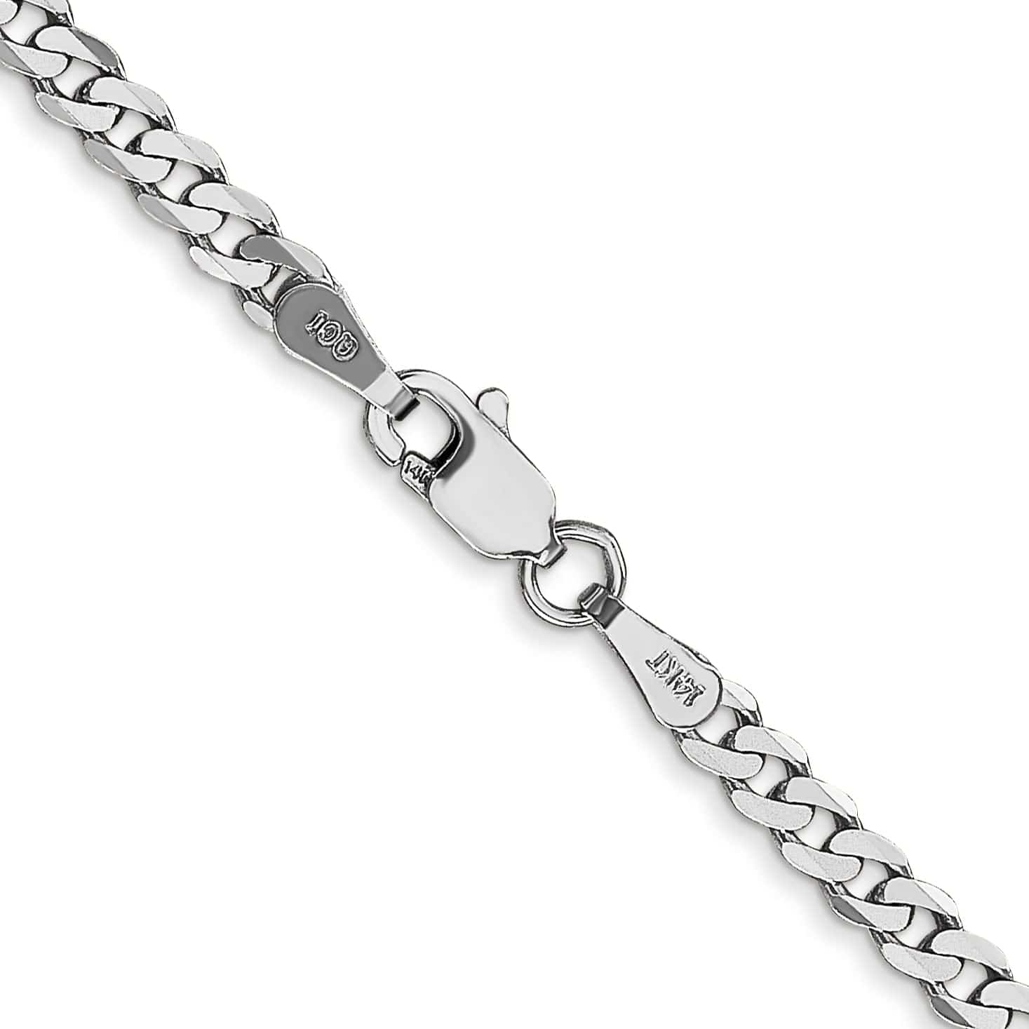 14k White Gold Polished 2.90mm Flat Curb Chain