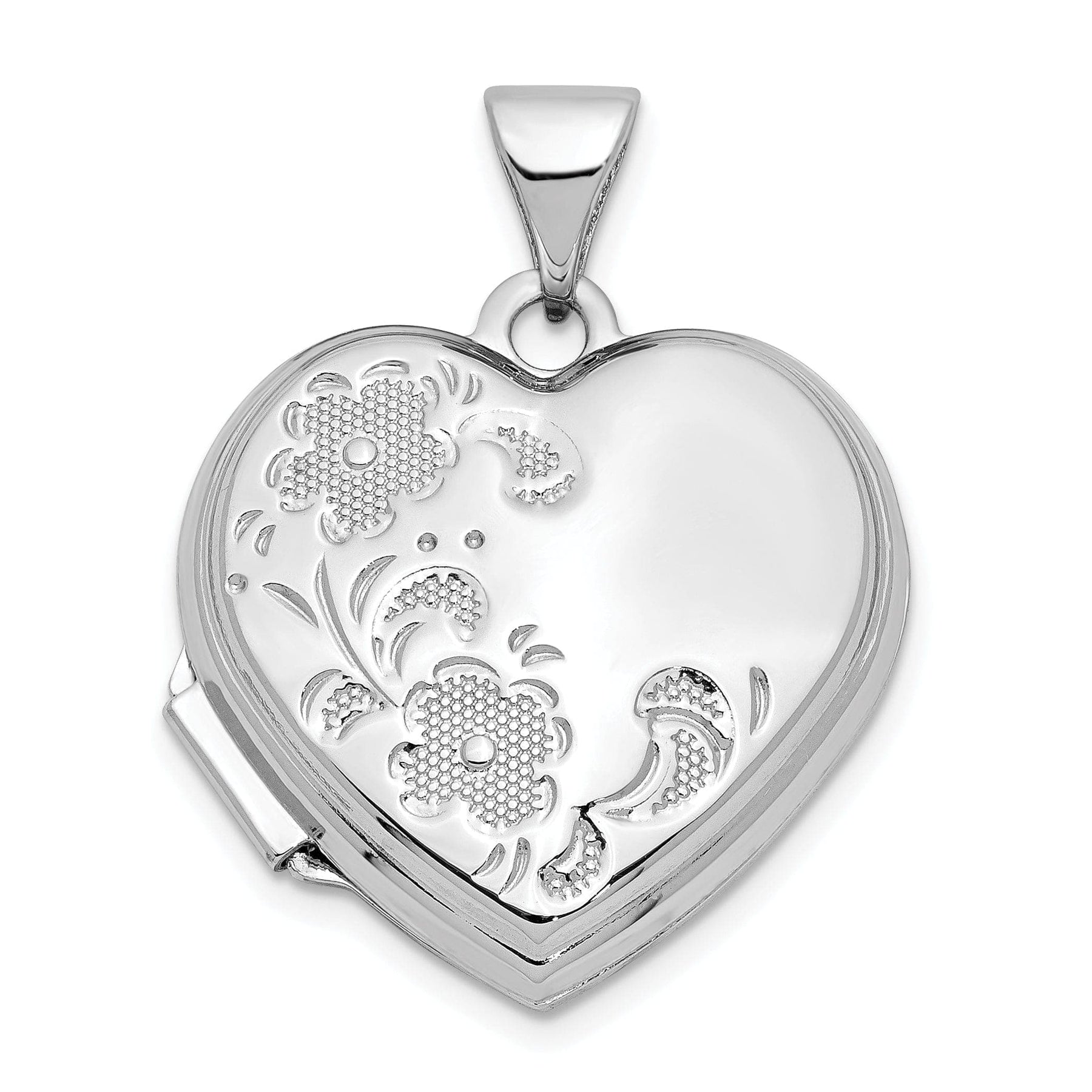 Lovely Rita's Pendants & Charms 14k White Gold Polished Heart-Shaped Floral Locket