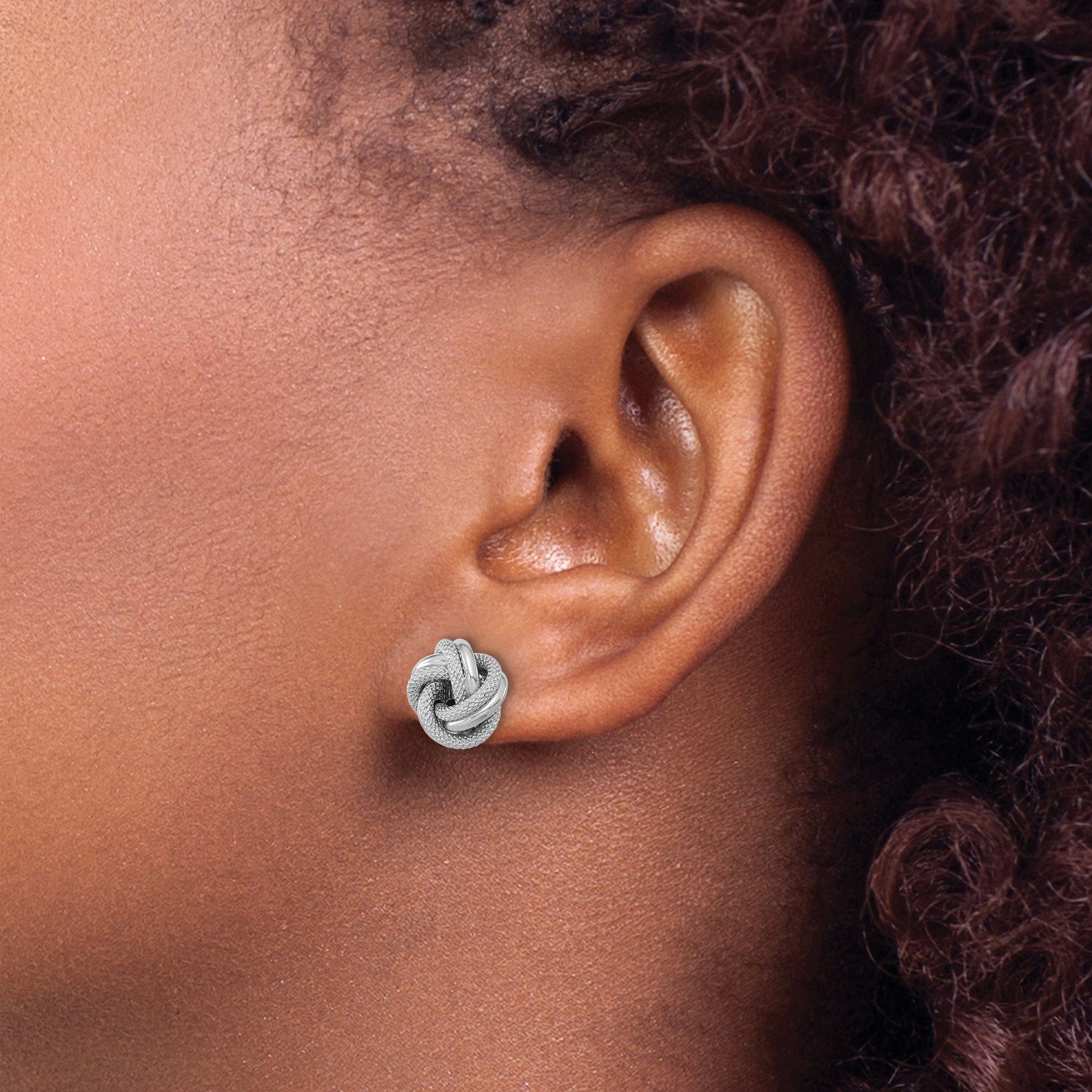 14K White Gold Modern Polished 10mm Double Love Knot Post Earrings