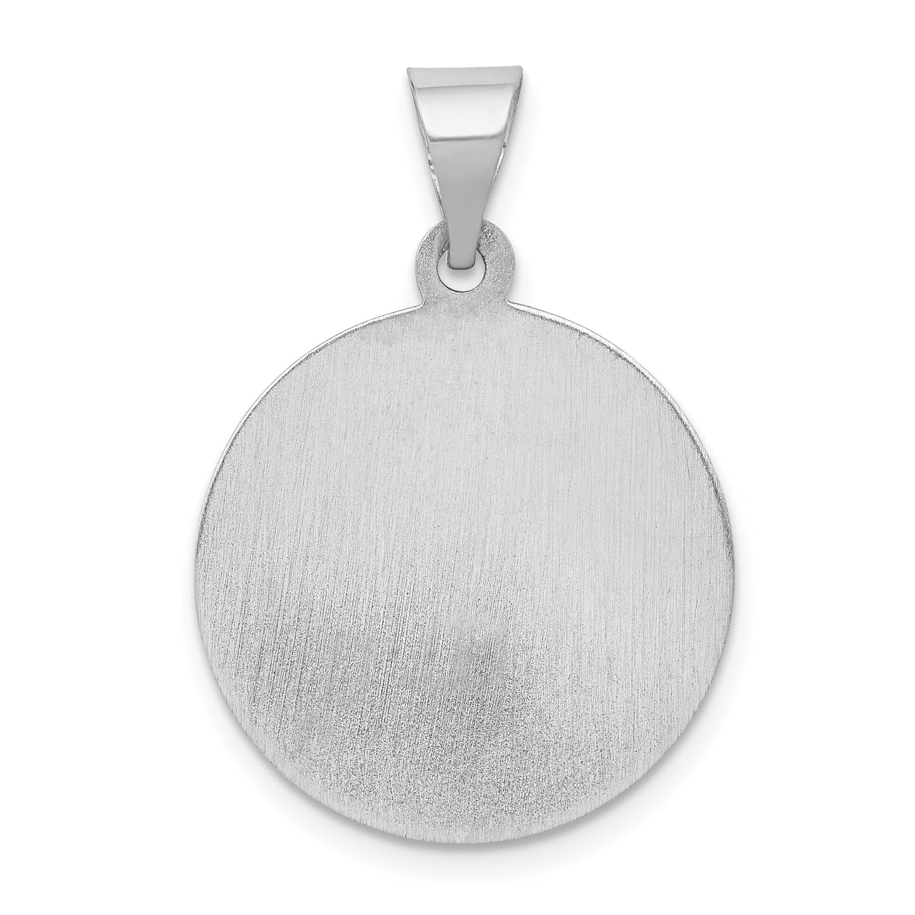 Elevate your style with this stunning 14k White Gold Saint Patrick Medal Pendant. Crafted from high-quality, hollow white gold, this round pendant features a combination of polished and satin finishes for a truly eye-catching look.