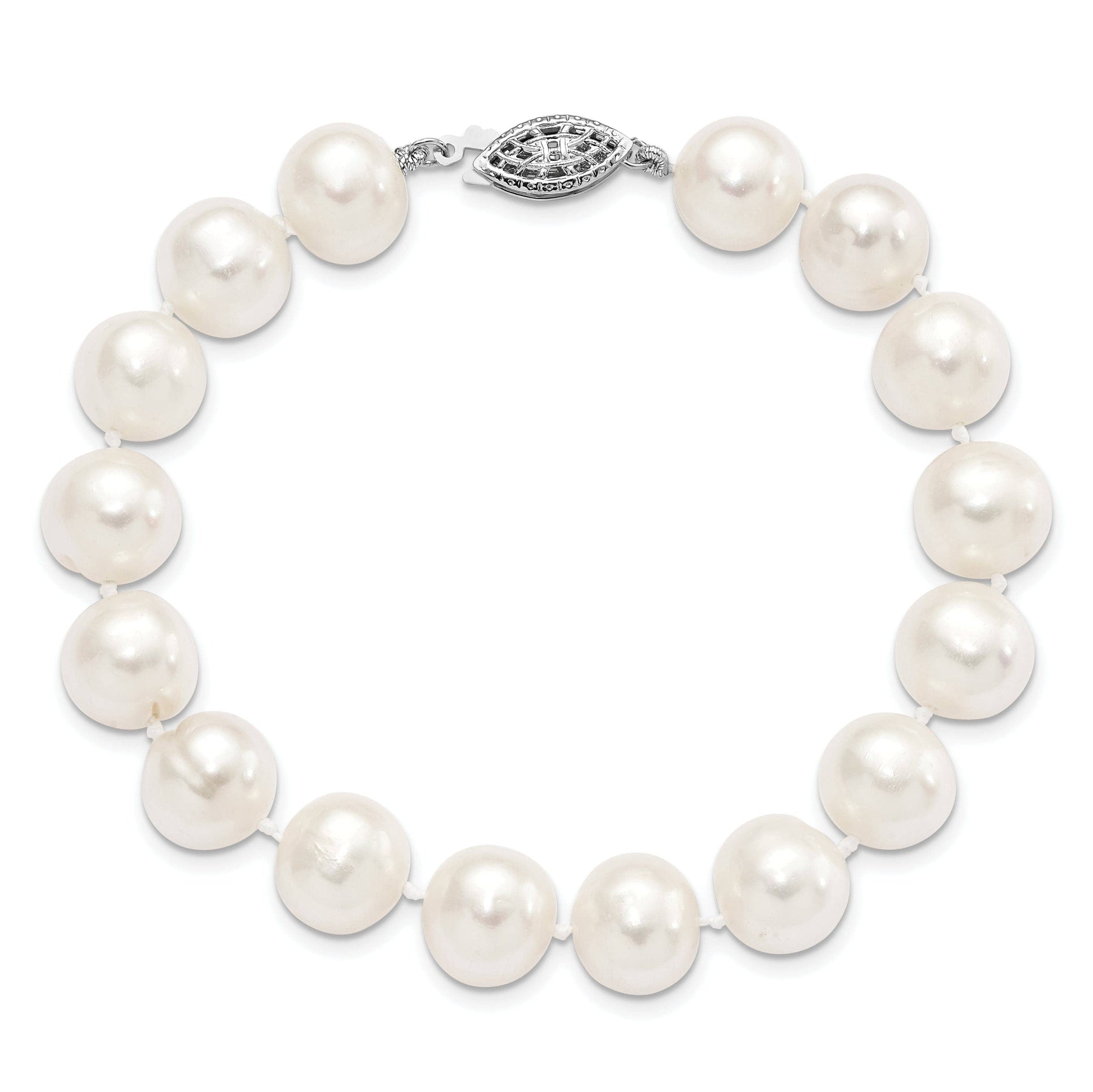 Indulge in the luxurious beauty of our Sterling Silver 10-11mm White Freshwater Cultured Pearl Bracelet with Pearl Clasp. This exquisite piece features lustrous, round freshwater cultured pearls that measure between 10-11mm in size, creating a stunning and elegant look.