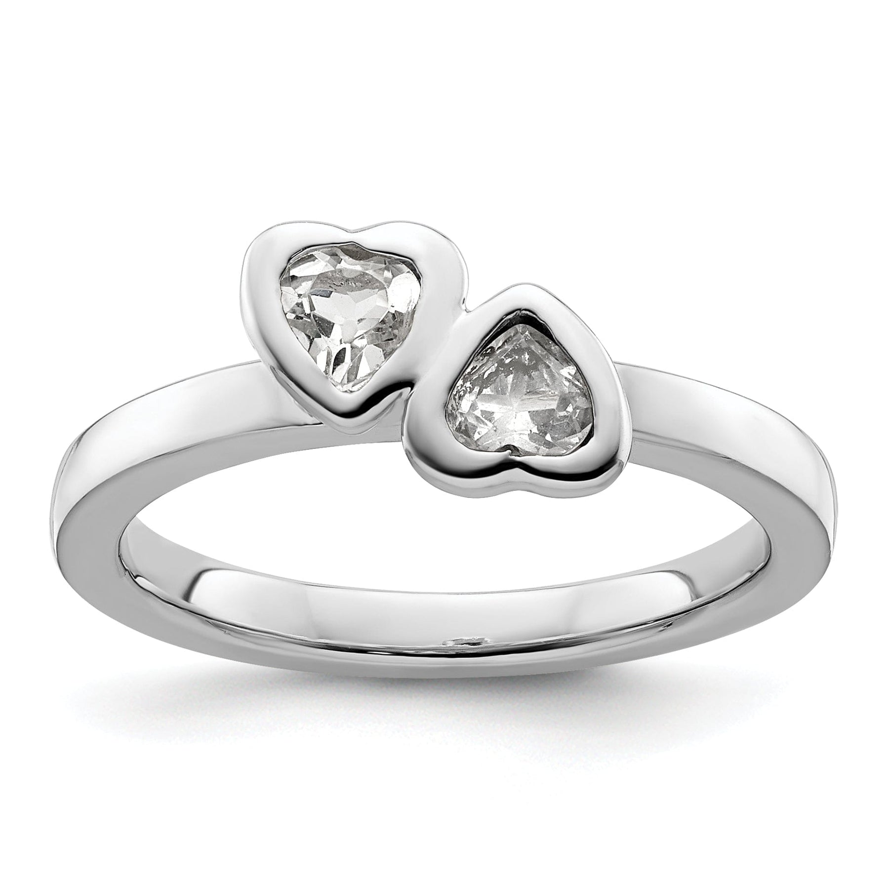 Elevate your style with this stunning Sterling Silver Stackable Expressions Heart Ring, featuring a beautiful double heart design adorned with sparkling white topaz gemstones. This exquisite ring is crafted from high-quality sterling silver, ensuring both durability and timeless elegance.