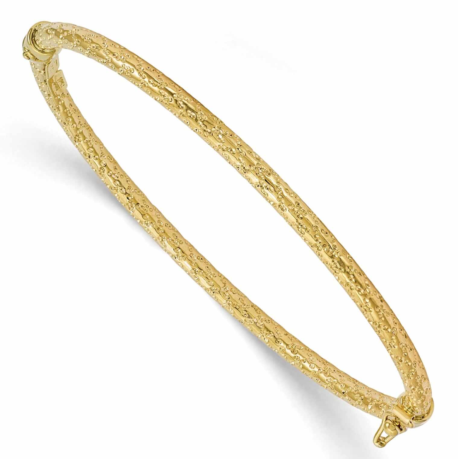 10k Yellow Gold Polished Textured Hinged Bangle