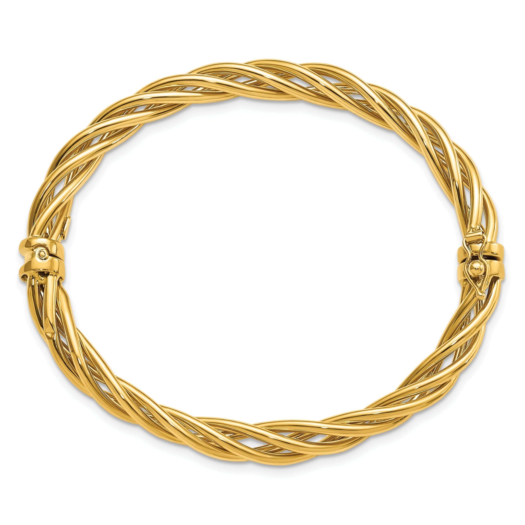 14k Yellow Gold Polished Twisted Hinged Bangle