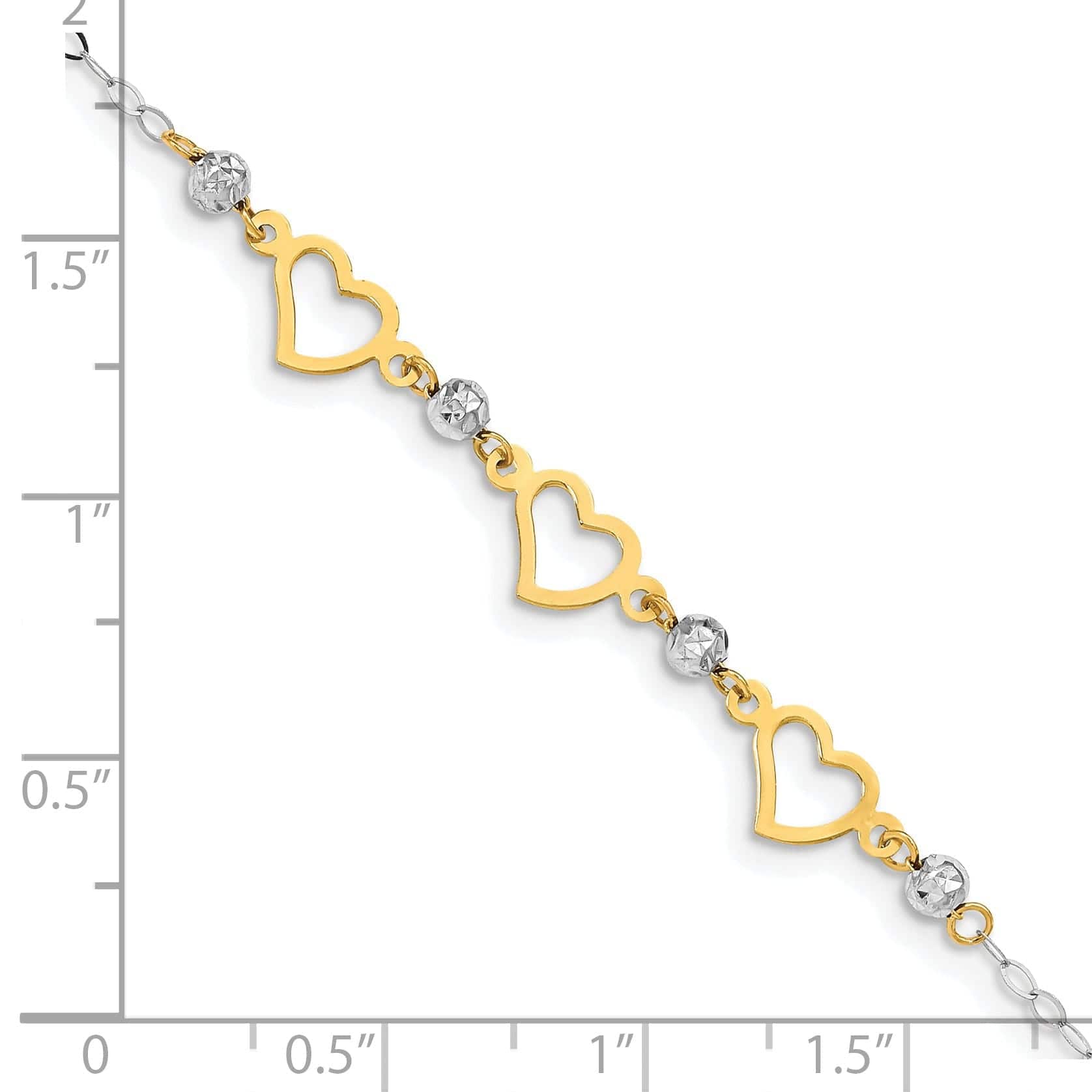 14K two-tone gold bracelet beads heart design, this 7.5-inch