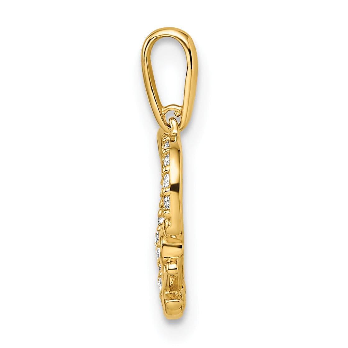 This 14k Yellow Gold CZ Heart with Anchor Pendant is a perfect addition to any jewelry collection, whether you wear it alone for a chic and minimalist look, or layer it with other pieces for a trendy and stylish ensemble. Add this pendant to your jewelry box today and let its beauty and symbolism shine bright.