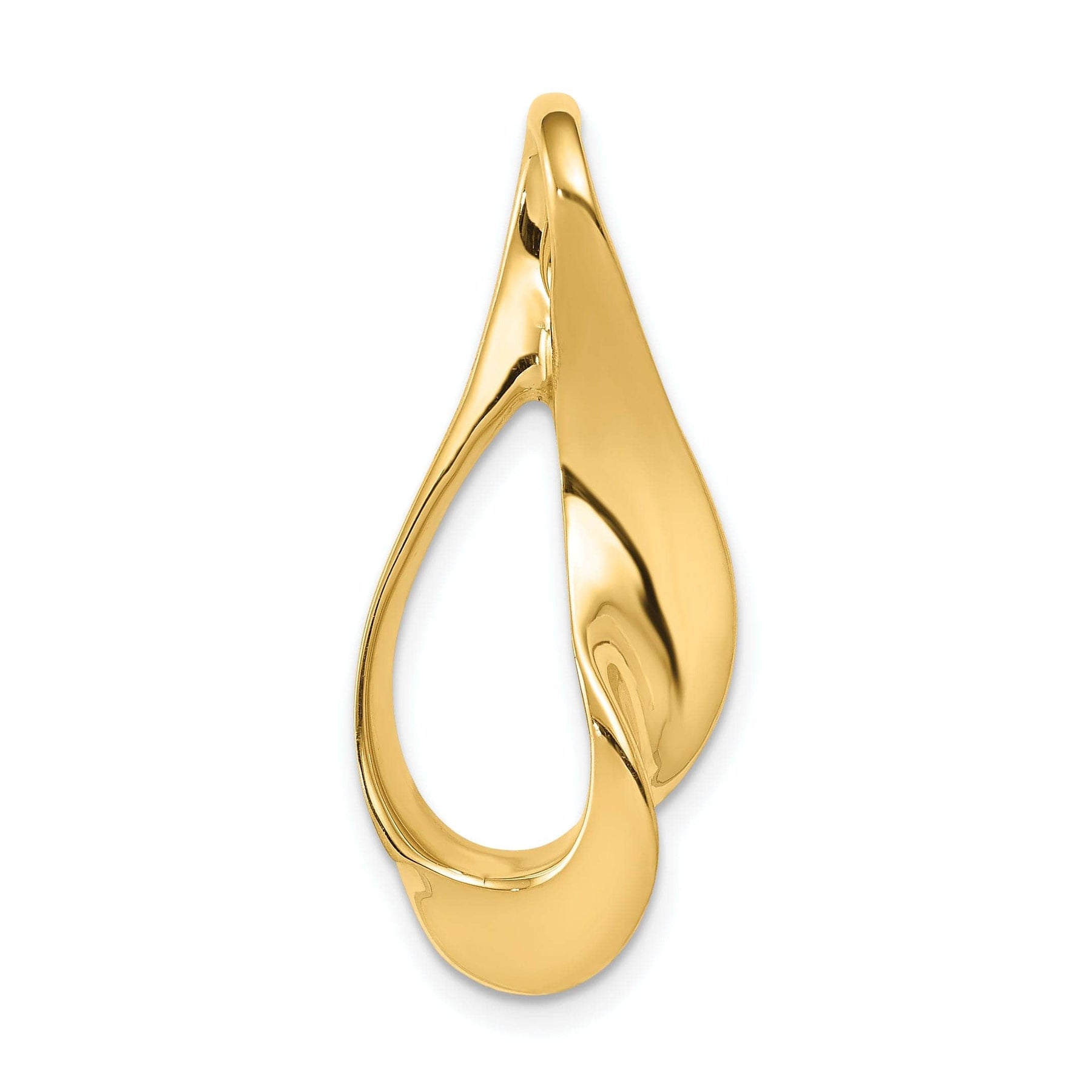 Add a touch of luxury to your everyday style with this gorgeous 14k Yellow Gold Solid Polished Finish Swirl Fancy Design Reversible Omega Slide Pendant. It is the perfect piece to elevate any outfit and make a statement wherever you go.