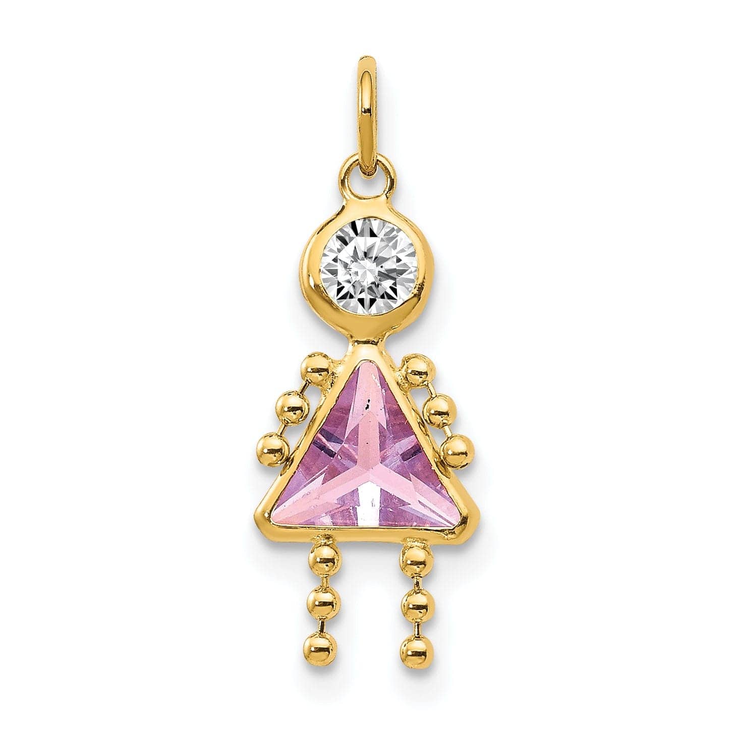 Introducing our exquisite 14k Yellow Gold June Girl Gemstone Charm, the perfect way to personalize your jewelry collection with a touch of elegance and sentimentality. This charming birthstone kids charm is the ideal addition to any necklace or bracelet, offering a beautiful way to showcase your loved ones or celebrate your own birth month.