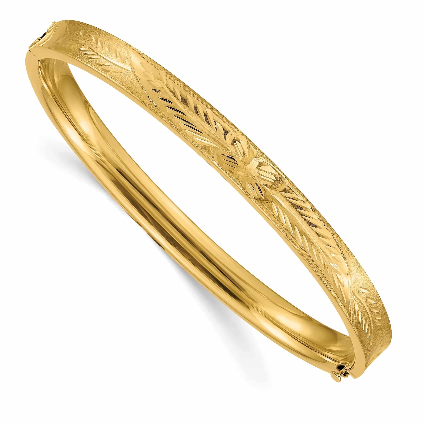Ideal für den täglichen Gebrauch oder besondere Anlässe, ist dieser 14K Gelbgold Armreif mit diamantgeschliffenem konkavem Scharnier ein zeitloses Accessoire, das niemals aus der Mode kommt. Gönnen Sie sich selbst oder einem lieben Menschen dieses exquisite Schmuckstück und verleihen Sie jedem Outfit einen Hauch von Eleganz. Mit seinem zeitlosen Design und seiner außergewöhnlichen Handwerkskunst ist dieser Armreif ein unverzichtbares Schmuckstück für jeden Liebhaber feiner Schmuckstücke.