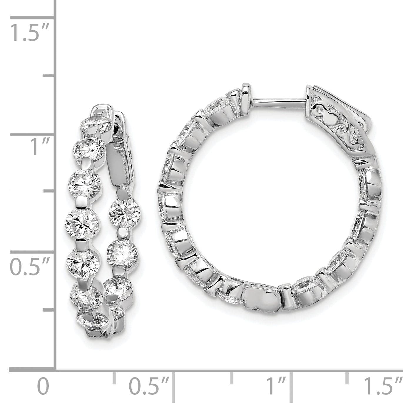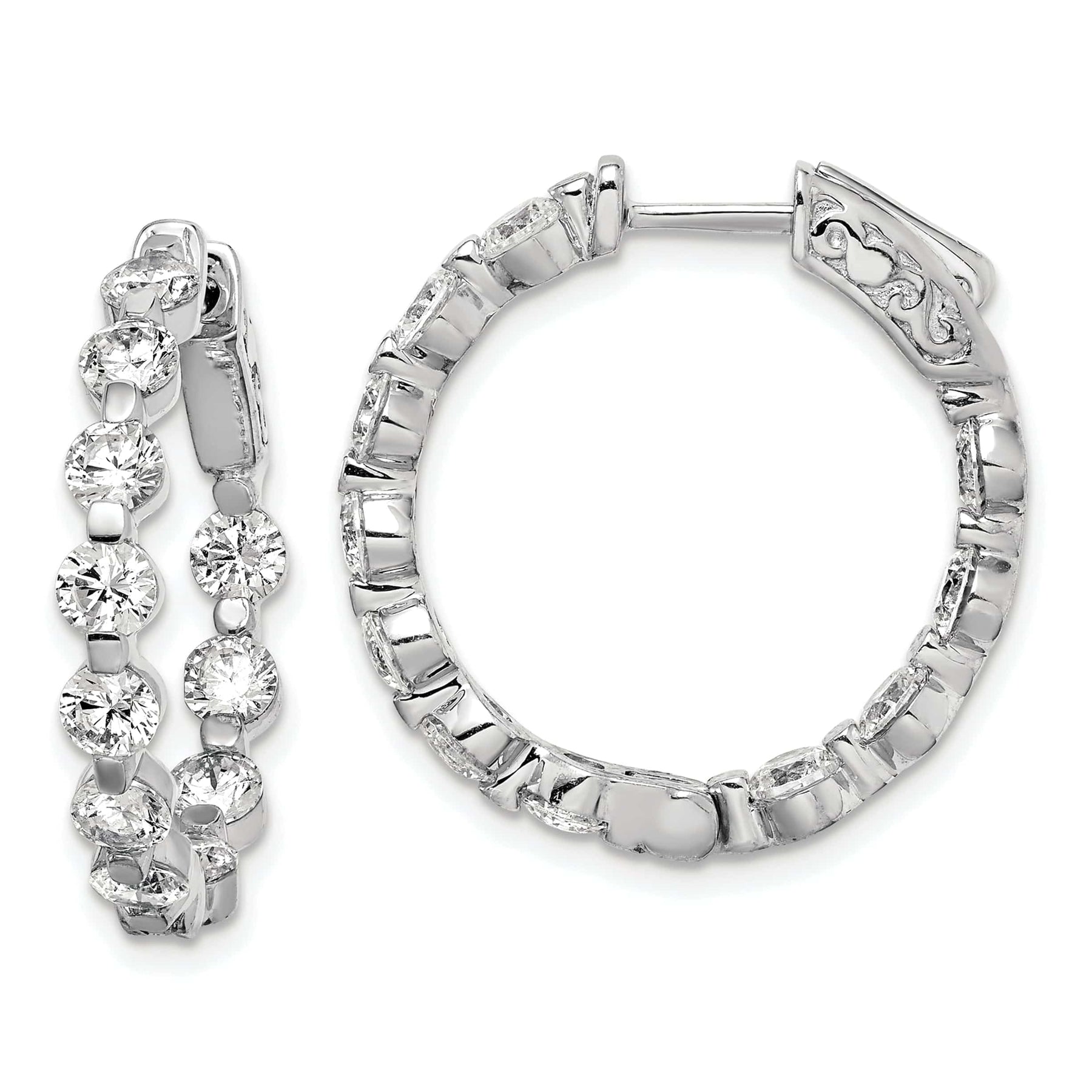 Jeder Ohrring ist mit einer schönen Reihe funkelnder Zirkoniasteine sowohl an der Innenseite als auch an der Außenseite des Rings besetzt, was jedem Outfit einen Hauch von Glanz und Eleganz verleiht. Der Klappverschluss ermöglicht ein einfaches An- und Ablegen und sorgt gleichzeitig für einen sicheren Sitz.