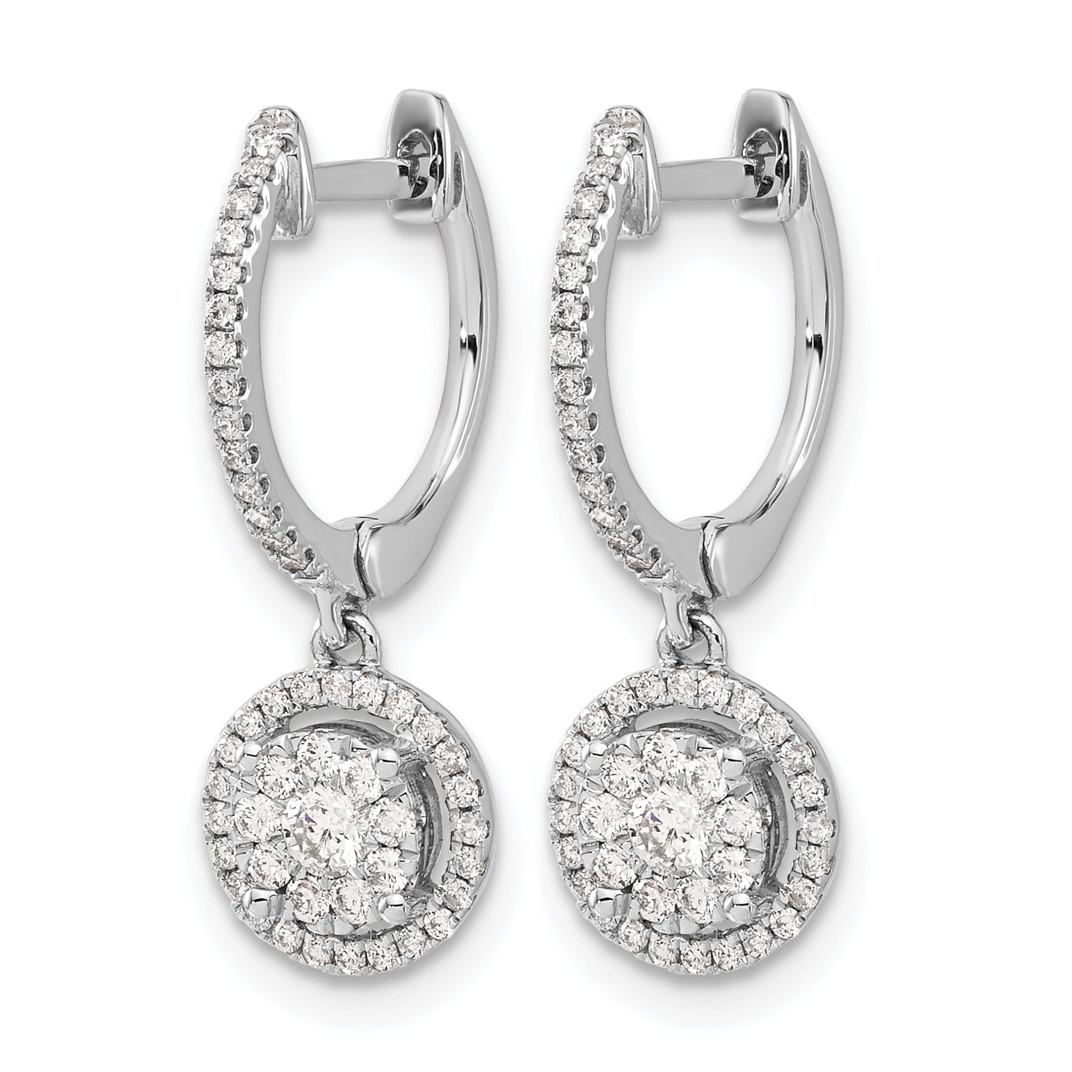 Eleve su estilo con estos exquisitos pendientes de aro articulados con racimo de diamantes de 1/2 CT en oro blanco de 14K. Elaborados en oro blanco macizo de 14K y bellamente pulidos, estos pendientes brillan con elegancia. Presentan un impresionante racimo de diamantes y ofrecen un diseño atemporal de caída y movimiento, perfecto para cualquier ocasión. Livianos, con solo 2.28 gramos, estos pendientes de 24 mm de largo son el accesorio ideal para añadir un toque de sofisticación a su apariencia.