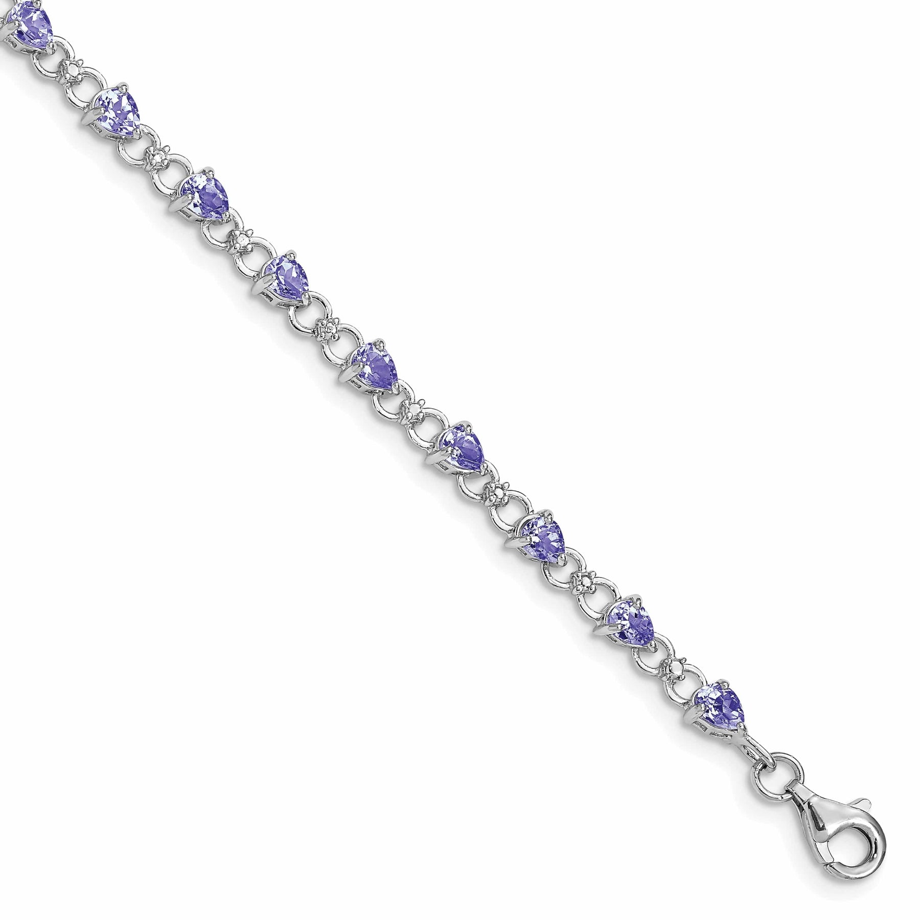 Esta pulsera es perfecta para ocasiones especiales o para el uso diario, ya que combina a la perfección un estilo clásico con un toque moderno. El cierre de langosta elegante garantiza un ajuste seguro y cómodo, facilitando su uso durante todo el día. Ya sea para darse un gusto o para sorprender a un ser querido, esta pulsera de Tanzanita en corte pera con diamantes en plata seguramente impresionará. Mejore su colección de accesorios con esta pieza atemporal que nunca pasará de moda.
