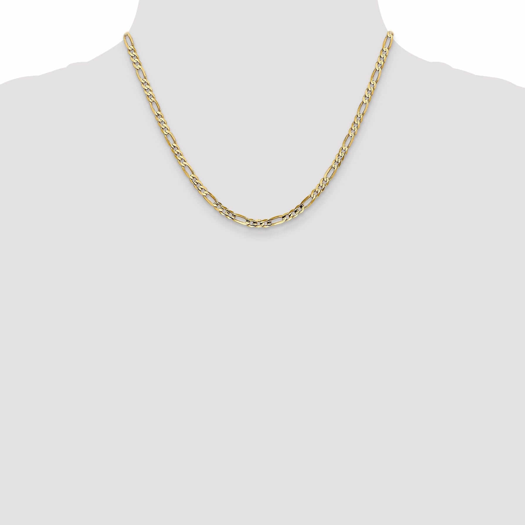 Agregue un toque de lujo a su colección de joyas con la cadena Figaro cóncava de 4.0 mm en oro amarillo de 10k de Leslie. Perfecta para regalar o para consentirse, esta cadena es una pieza versátil y atemporal que será apreciada durante muchos años. Eleve su estilo con esta impresionante cadena que seguramente atraerá todas las miradas dondequiera que vaya.