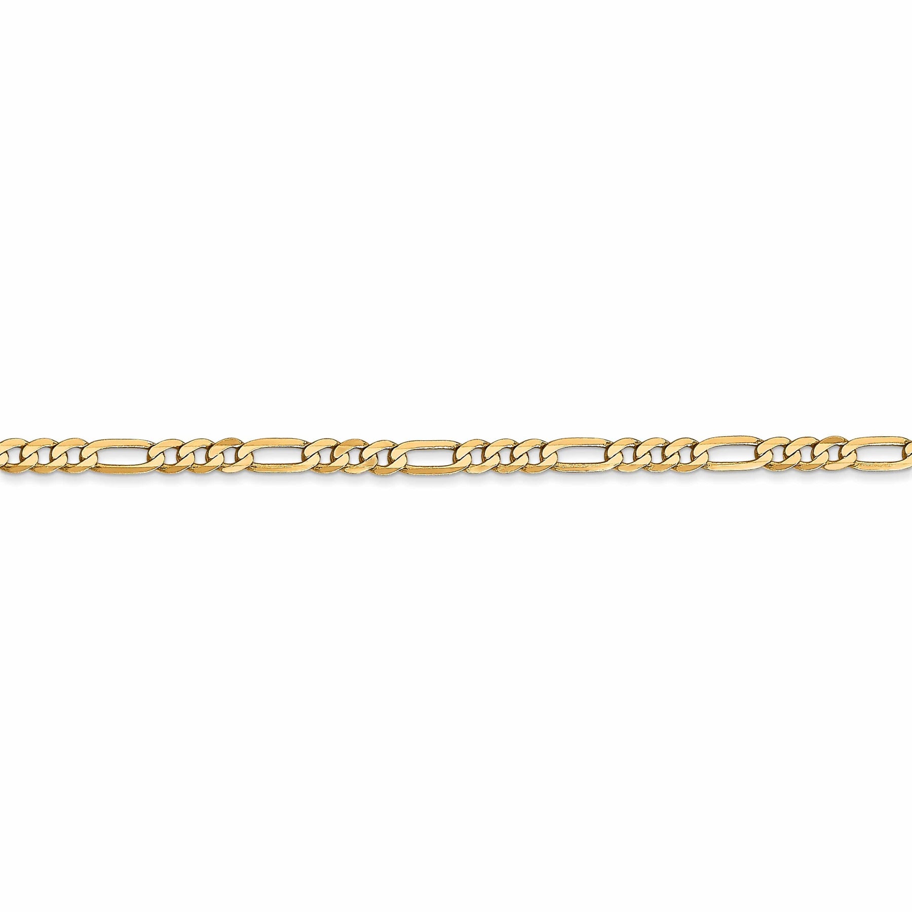 Regálese a usted mismo o a un ser querido la belleza de la cadena Figaro plana de 2.75 mm en oro amarillo de 14k de Leslie y añada un toque de sofisticación a su colección de joyas. Esta pieza versátil y atemporal es imprescindible para quien valora la elegancia clásica y la fina artesanía.