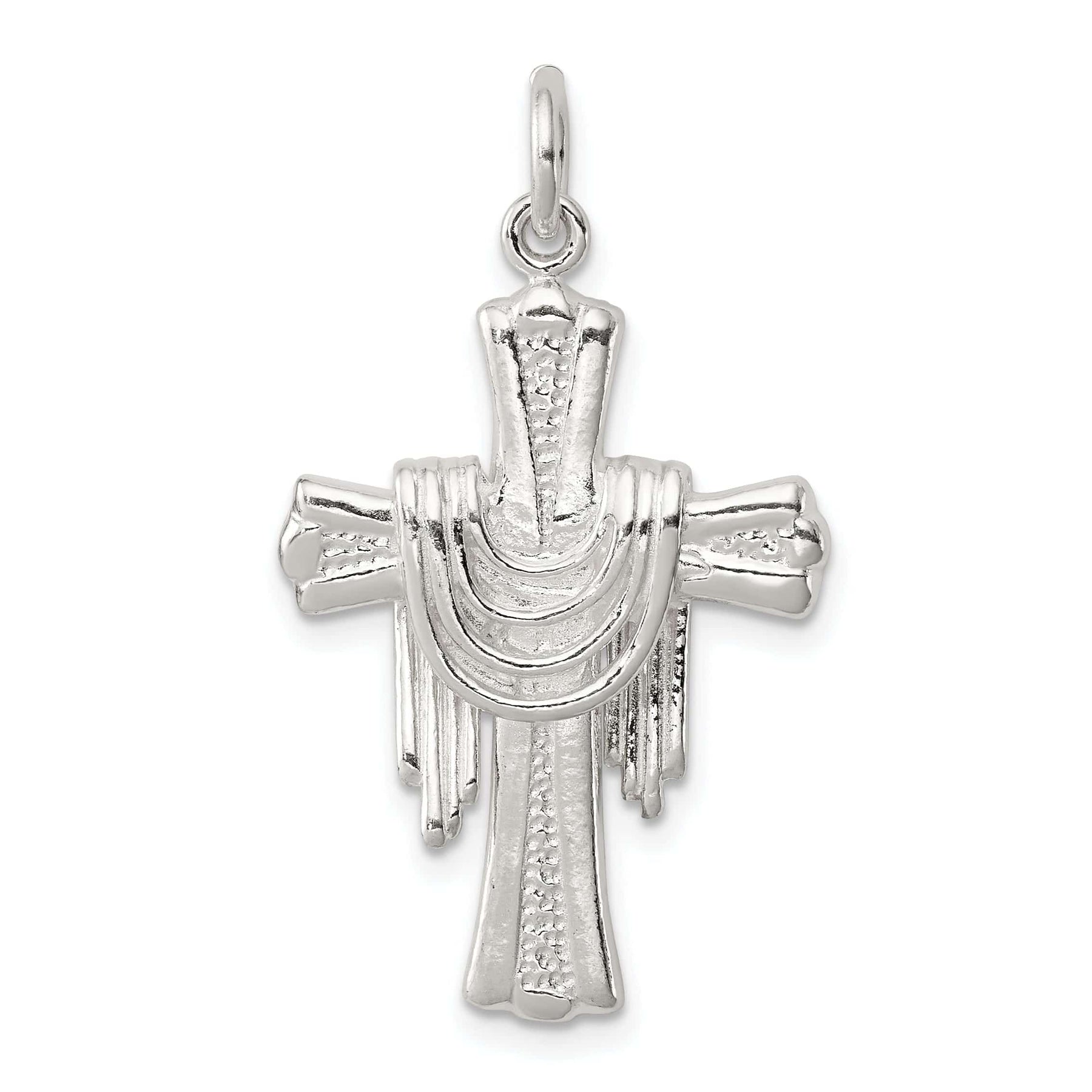 Idagdag ang kahanga-hangang Sterling Silver Draped Cross Pendant na ito sa iyong koleksyon ng alahas ngayon at hayaang magningning ang kagandahan nito sa mga darating na taon.