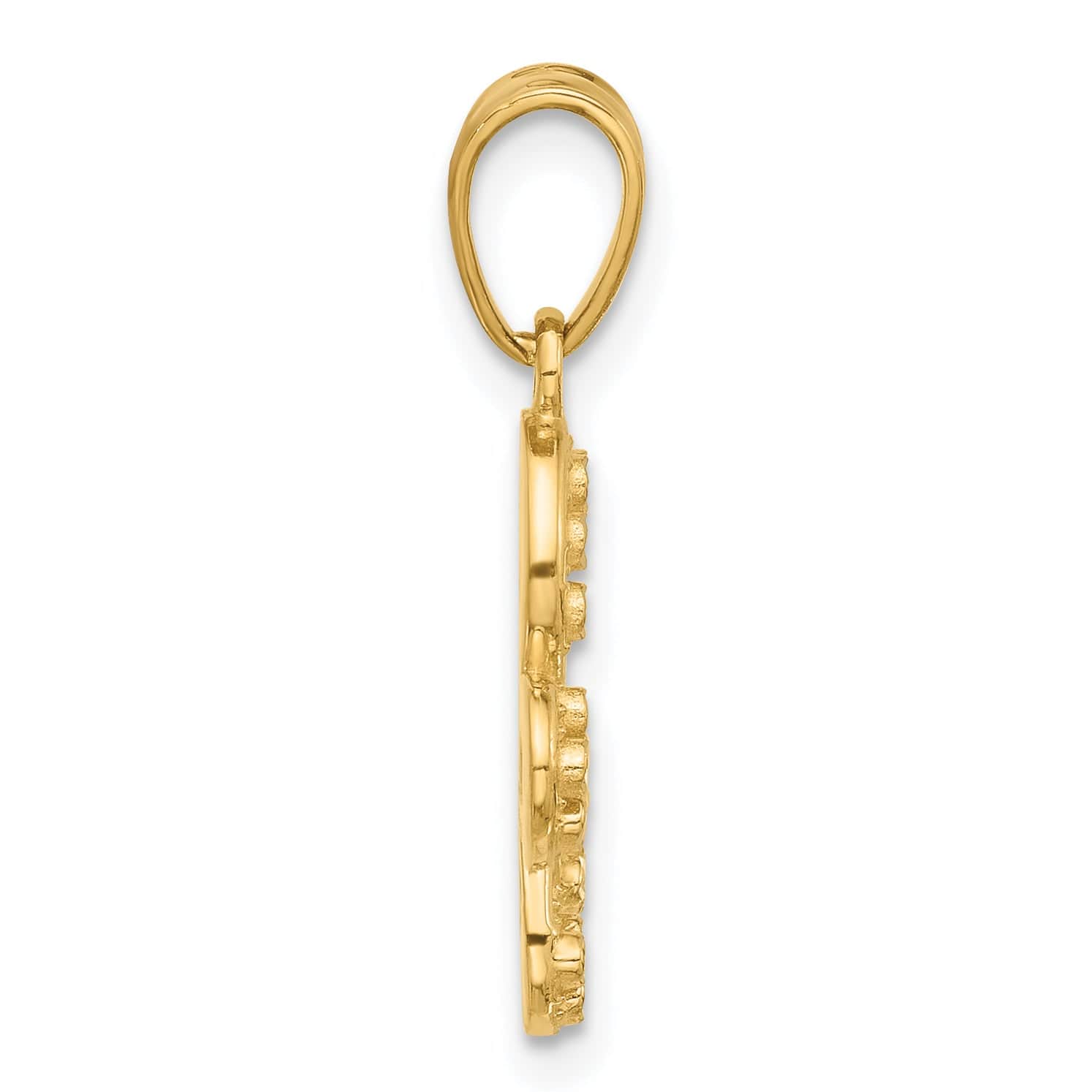 Ang bail, na may sukat na 7.5 mm ang haba at 3.7 mm ang lapad, ay mahusay na ginawa upang matiyak ang matibay na pagkakabit sa iyong paboritong tanikala o kwintas. Ang kadalisayan ng 14K ginto ay nagsisiguro hindi lamang ng kagandahan kundi pati na rin ng kalidad, kaya ang pendant na ito ay isang mahalagang dagdag sa iyong koleksyon ng alahas.