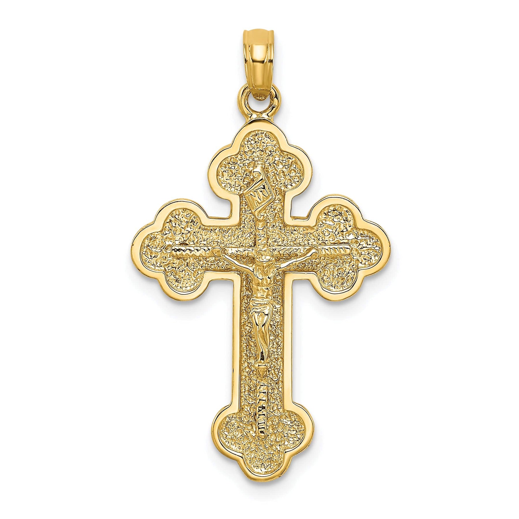 Itaguyod ang iyong koleksyon ng alahas gamit ang 14K Dilaw na Gintong Klasikong Krus na may Tip na May Butil. Gawa mula sa matibay na 14K dilaw na ginto, ang makintab na pendant na ito ay may magagandang teksturang tip na may butil na nagpapatingkad sa walang kupas nitong kariktan. May bigat na 3.08 gramo at sukat na 32.9 mm ang haba at 19 mm ang lapad, ito ay matibay at elegante. Kumpleto ang pendant ng 7 mm na butas para madaling ikabit sa mga tanikala. Isang perpektong piraso para ipahayag ang pananampalataya o bilang isang maalalahaning regalo.