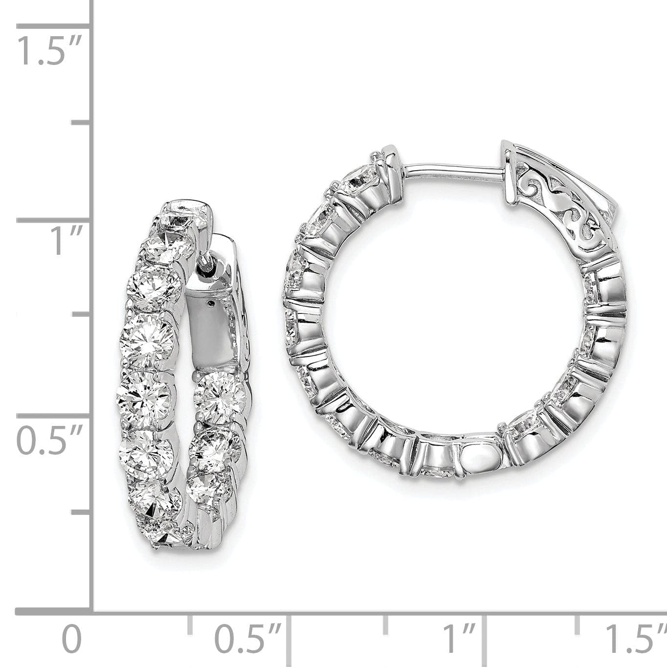 Perpekto bilang regalo para sa iyong sarili o sa isang mahal sa buhay, ang Sterling Silver CZ Hoop Earrings na ito ay isang maraming gamit at magarang pagpipilian na hindi kailanman mawawala sa uso. Magpahayag ng iyong estilo gamit ang mga kahanga-hangang hikaw na ito na tiyak na magiging paborito sa iyong koleksyon ng alahas.