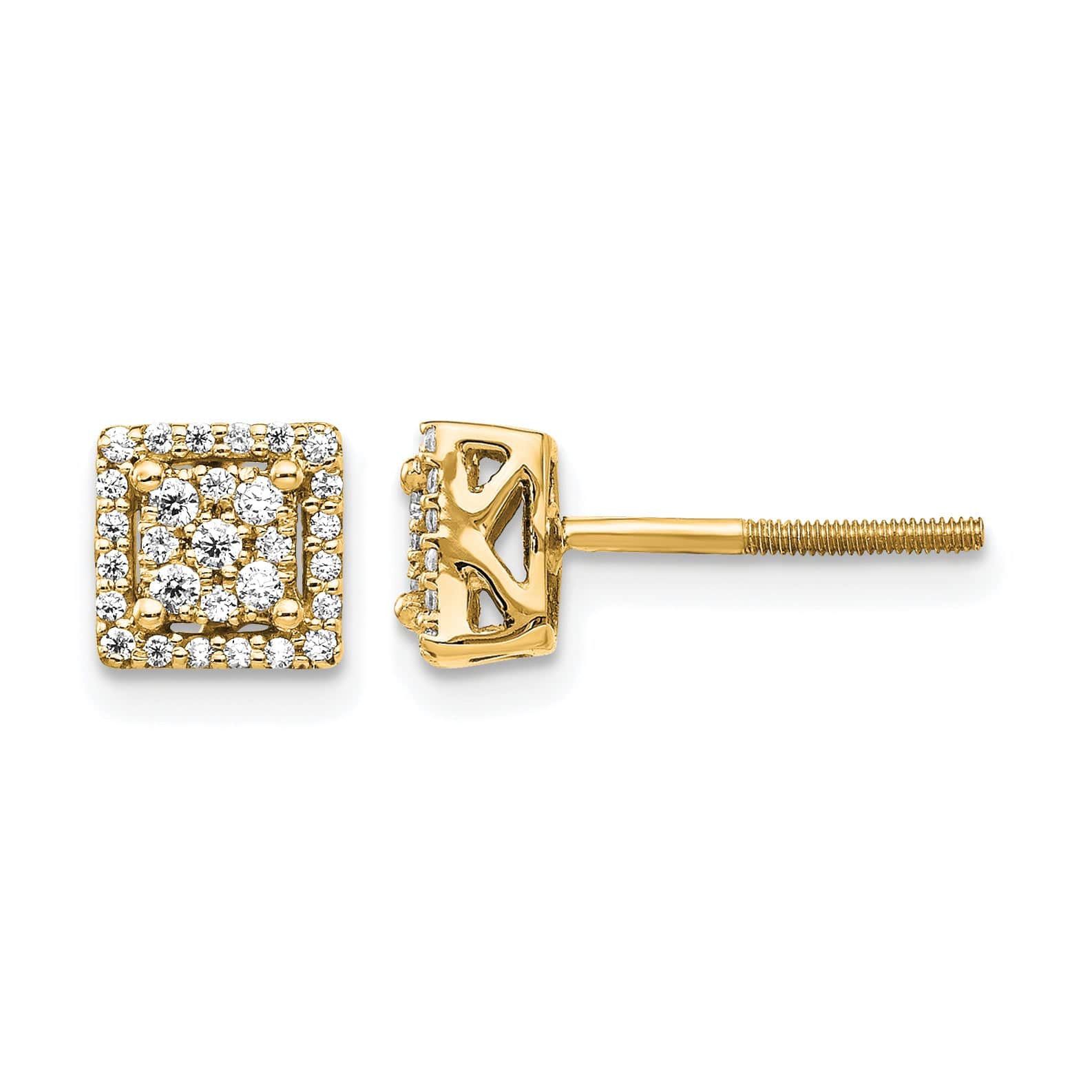 Itanghal ang iyong estilo gamit ang mga kahanga-hangang 14k Dilaw na Ginto 1/4 CT Diamond Cluster na Parisukat na Screwback Post na Hikaw. May makintab na tapusin, ang matibay na mga hikaw na ito ay may bigat na 1.51 gramo at ginawa mula sa solidong 14K dilaw na ginto. Bawat hikaw ay may eleganteng parisukat na disenyo na pinalamutian ng 10 kumikislap na diyamante, na nagdaragdag ng isang haplos ng kariktan sa anumang kasuotan. Sa sukat na 7 mm ang haba at lapad, nagbibigay ito ng perpektong pagsasanib ng kariktan at ginhawa. Mainam para sa araw-araw na suot at mga espesyal na okasyon.