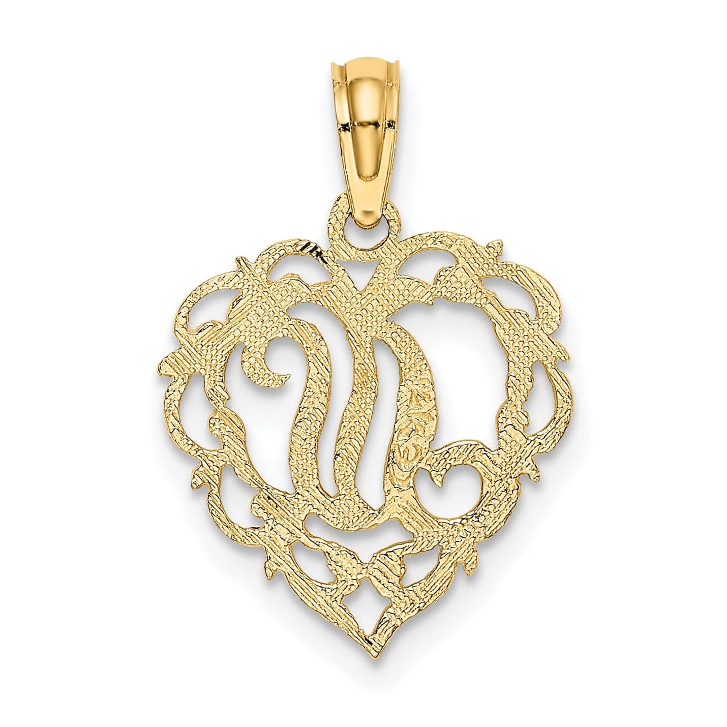 Apportez une touche de luxe à votre collection de bijoux avec notre pendentif charm en or jaune 14K en forme de cœur avec l'initiale "N" en écriture cursive élégante. Cette pièce deviendra assurément un favori précieux pour les années à venir.