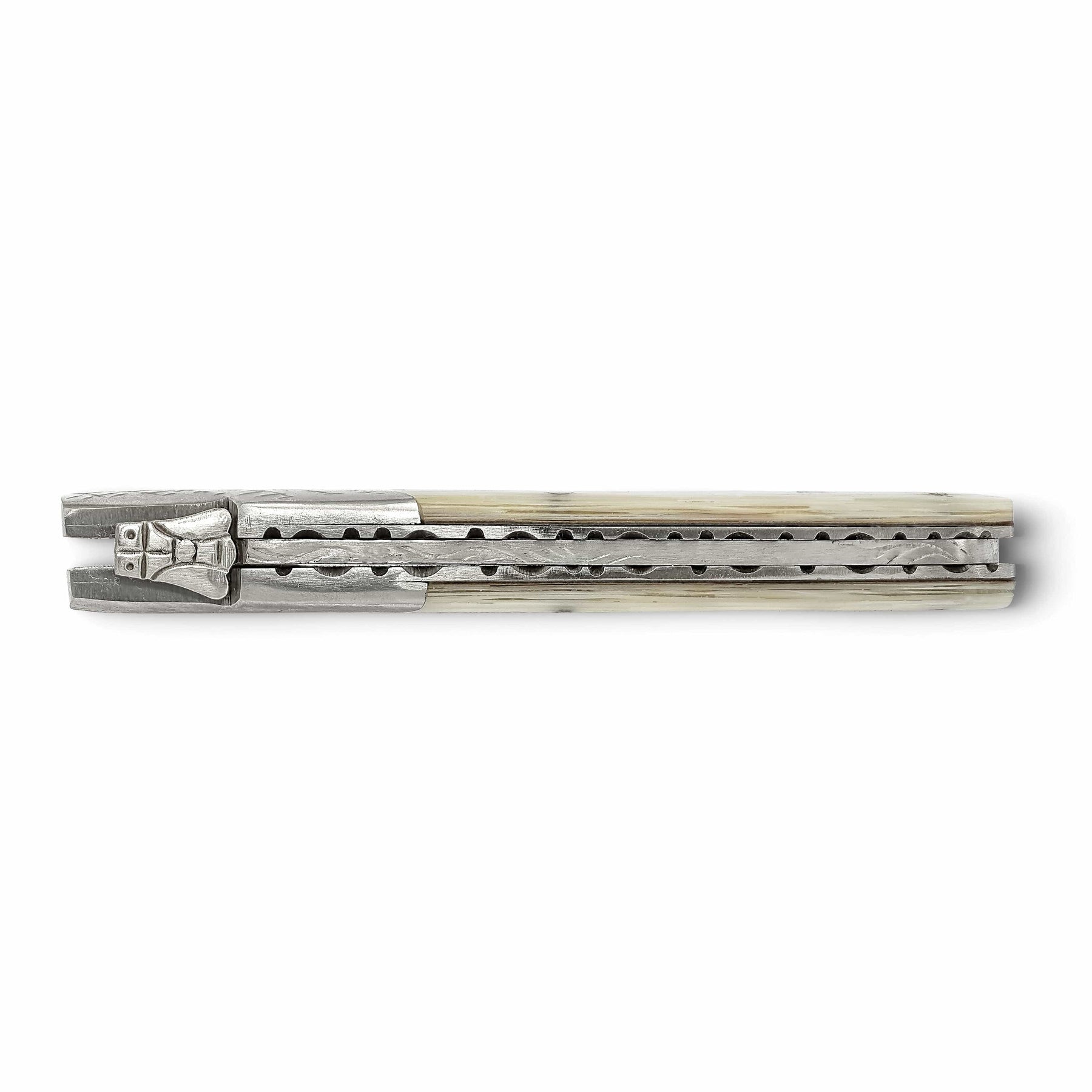 Conçu à la fois pour la fonctionnalité et l’esthétique, la garde en acier de ce couteau pliant renforce non seulement sa robustesse, mais apporte également une note de style à son apparence générale. Ce couteau n’est pas simplement un outil, mais une œuvre d’art qui attirera tous les regards où qu’il soit exposé.