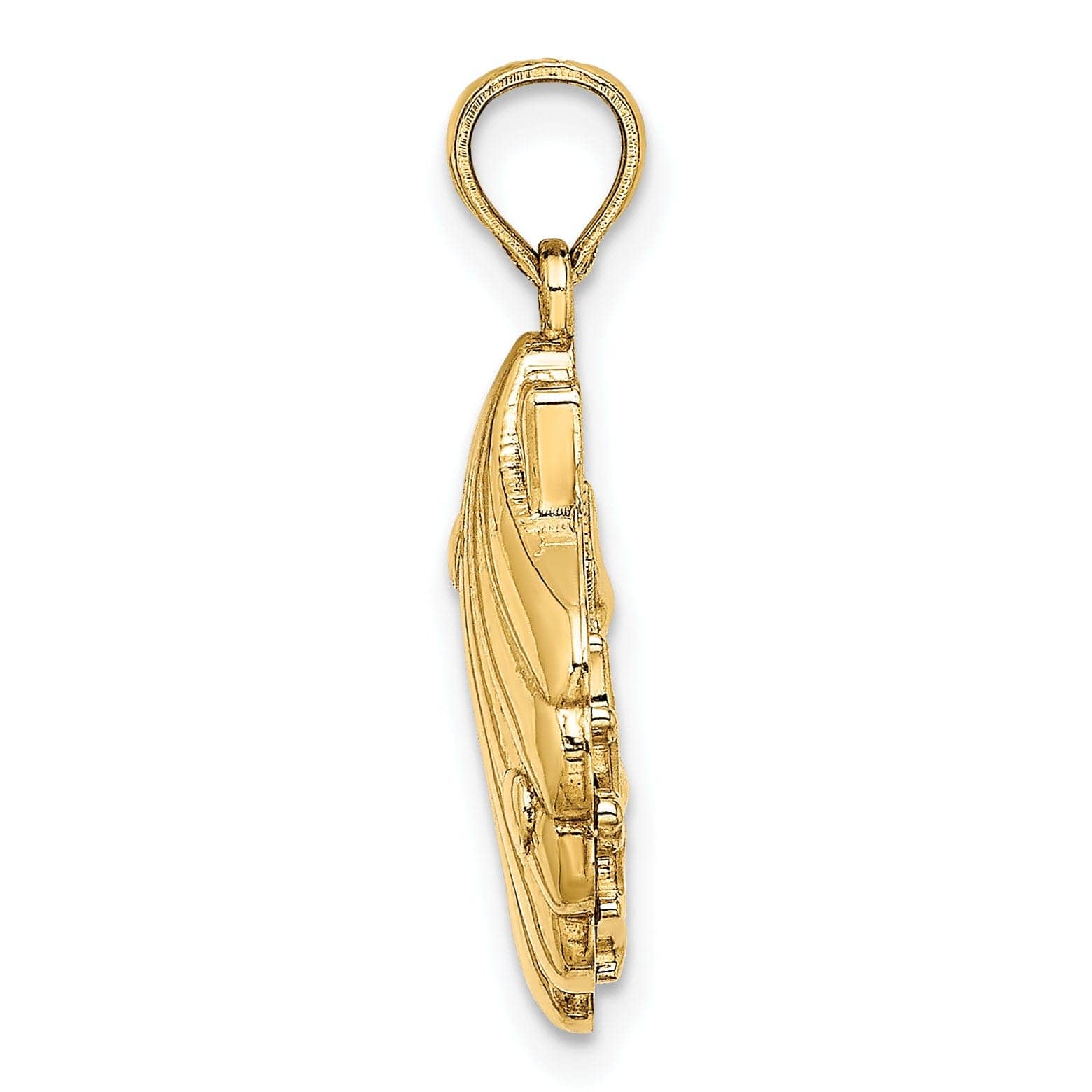 Réalisé en or jaune 14K de haute qualité, ce pendentif dégage un éclat luxueux qui capte la lumière à chaque mouvement. La finition polie texturée ajoute une touche de raffinement, faisant de cet accessoire le complément parfait à toute tenue. Que vous vous rendiez à un brunch en bord de mer ou à une soirée formelle, ce pendentif charm rehaussera votre allure et mettra en valeur votre style impeccable.