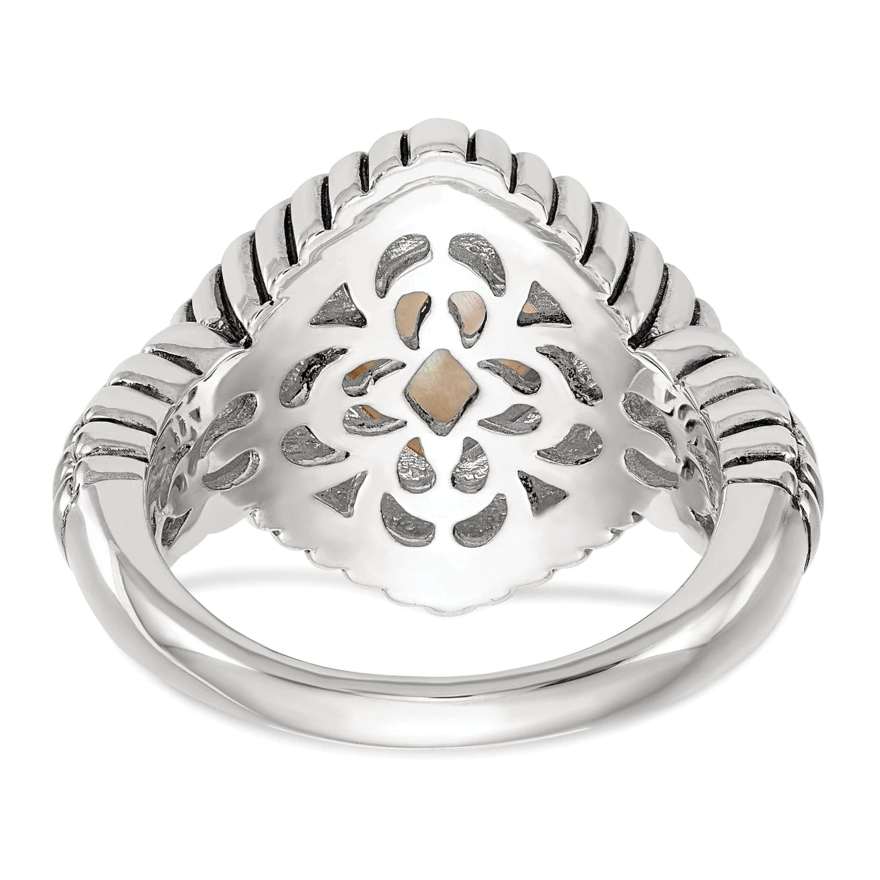 Offrez-vous ou offrez à un être cher cette splendide bague en argent sterling avec nacre et or jaune 14 carats, et apportez une touche de luxe à toute tenue. Cette bague deviendra assurément un joyau précieux de votre collection de bijoux pour les années à venir.