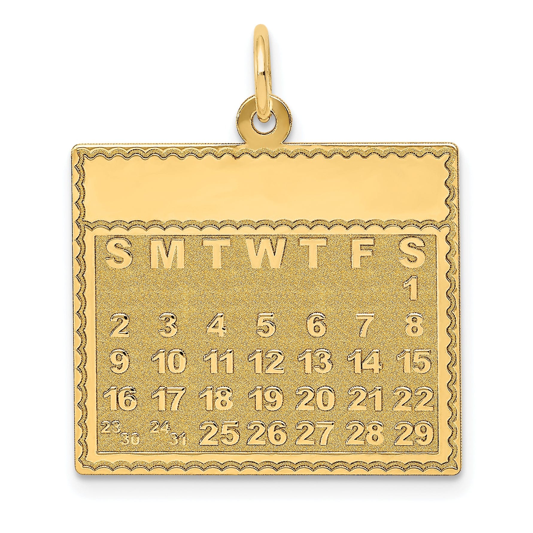 Pendentif breloque calendrier « Samedi, premier jour » en or jaune 14K Poids moyen 2,45 g, largeur de l’article 22 mm