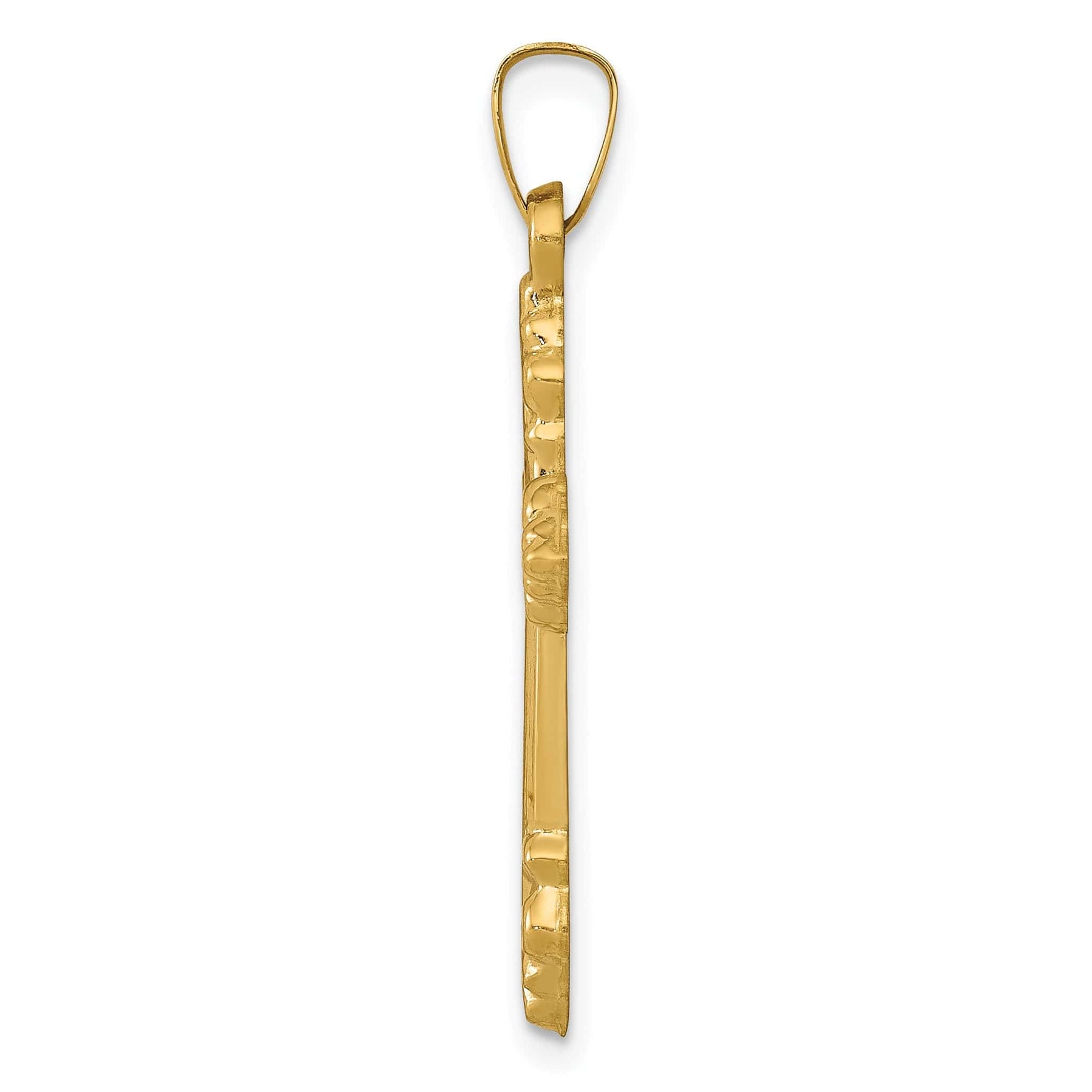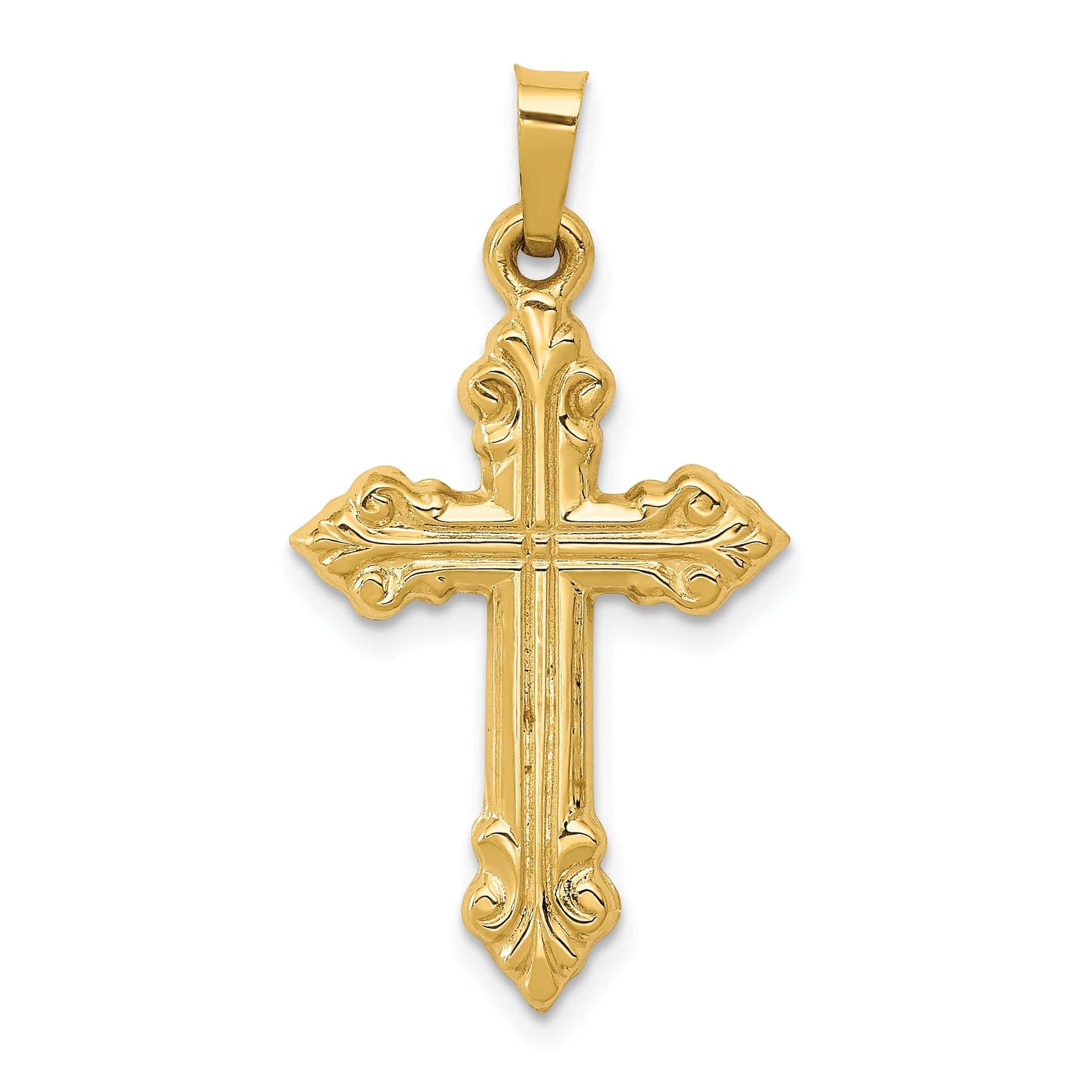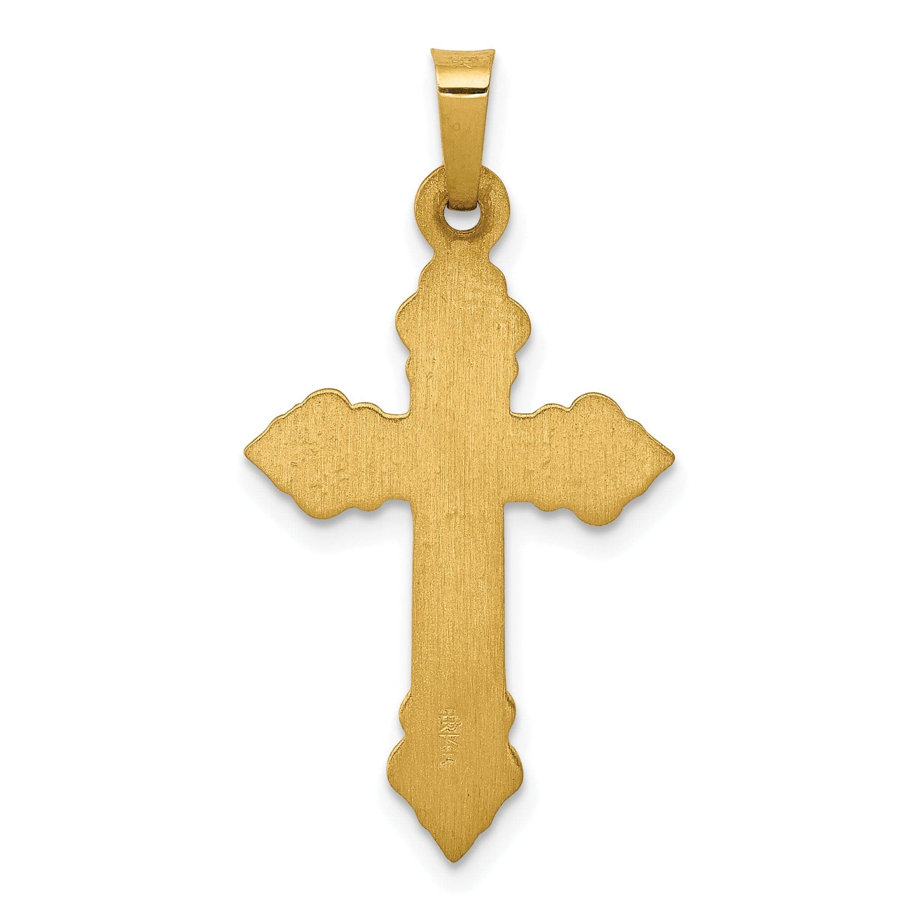 Élevez votre style avec le pendentif croix Fleur de Lis classique et poli en or jaune 14 carats. Cette pièce exquise allie l'élégance intemporelle du motif fleur de lis à une finition polie, réalisée en or jaune massif 14 carats pour une durabilité durable. Pesant 0,66 gramme et mesurant 31,25 mm de longueur, ce pendentif présente une texture satinée raffinée. L'anneau d'attache offre une polyvalence avec une longueur de 6,25 mm et une largeur de 2,6 mm, facilitant son association avec votre chaîne préférée. Accessoire parfait pour toute occasion, ce pendentif incarne la beauté classique et la signification spirituelle.