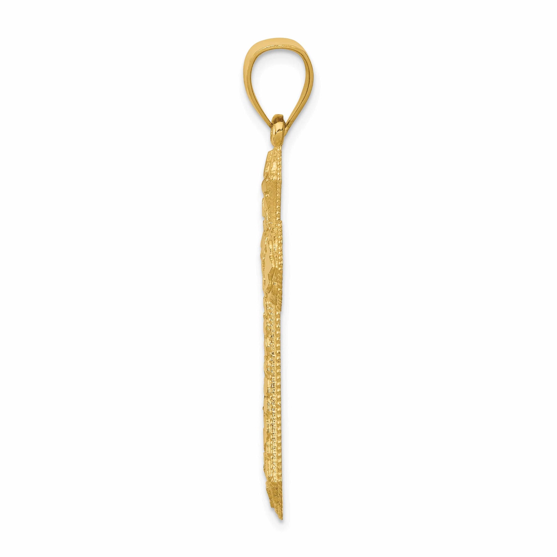 Découvrez l'élégance avec notre pendentif croix Fleur de Lis à bourgeons classique en or jaune 14K. Confectionné en or jaune 14K de haute qualité, ce pendentif présente une finition taillée au diamant qui met en valeur son design complexe de croix à bourgeons. Pesant 2,24 grammes et mesurant 41,12 mm de longueur avec une surface polie, il est à la fois solide et durable. Parfait pour toute occasion, cette pièce exquise allie un style intemporel à un savoir-faire remarquable. Idéal pour exprimer la foi ou comme cadeau significatif.