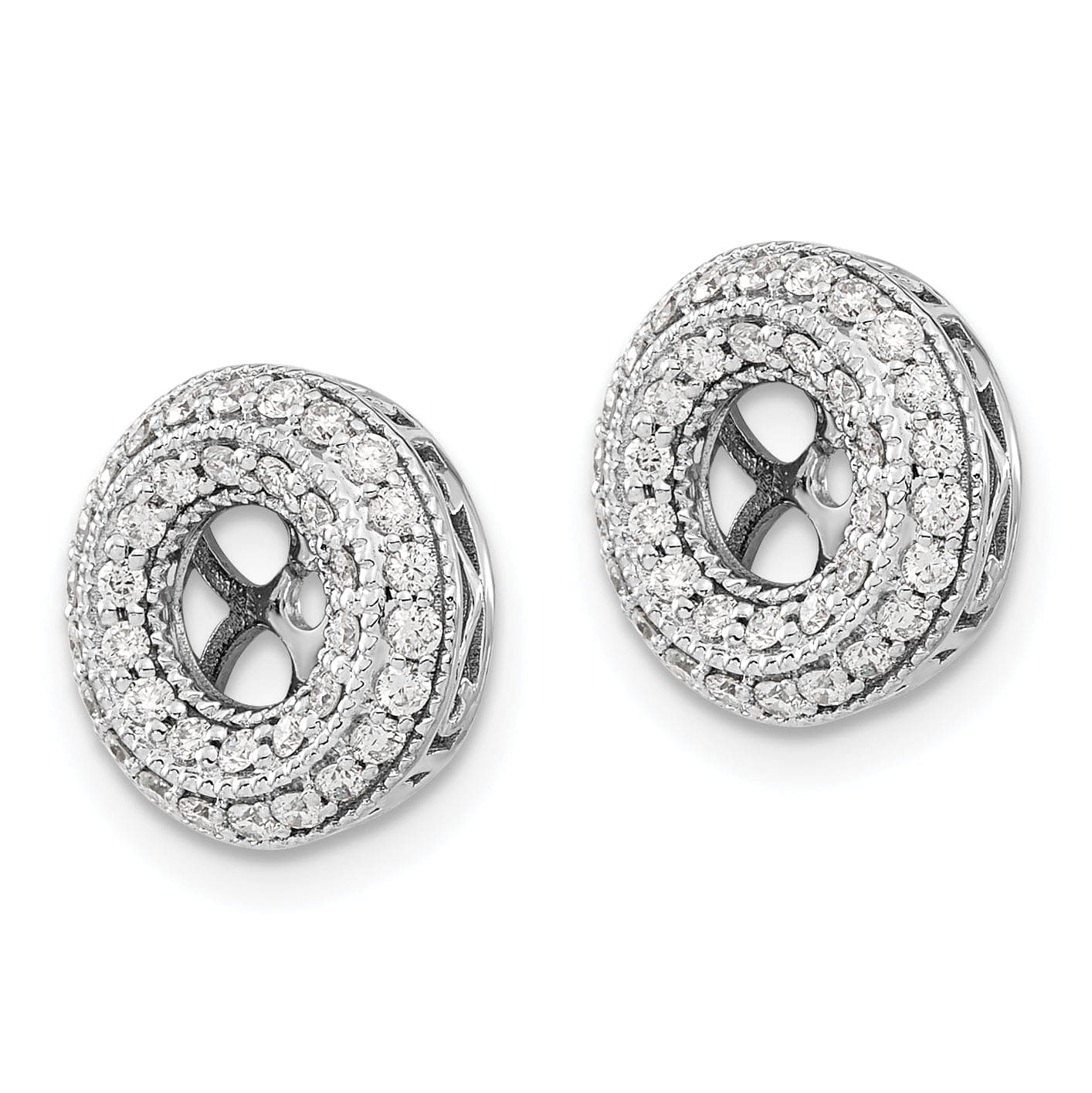 שדרגו את אוסף התכשיטים שלכם עם מעמדי עגילים מדהימים אלו מעודן זהב לבן 14K עם 1/2 קראט יהלומים במעגל כפול. מעוצבים מזהב לבן 14K מלא ומצופים ברודיום למראה מבריק ומלוטש, מעמדי העגילים הללו כוללים 44 יהלומים נוצצים שמדגישים בצורה מרהיבה את עגילי הסטוד האהובים עליכם. במידות קומפקטיות של 12 מ"מ אורך ורוחב, הם מציעים איזון מושלם בין אלגנטיות לעמידות. במשקל של 2.23 גרם בלבד, מעמדי העגילים הללו מעוצבים לנוחות וסטייל, והם תוספת יוצאת דופן לכל לבוש.