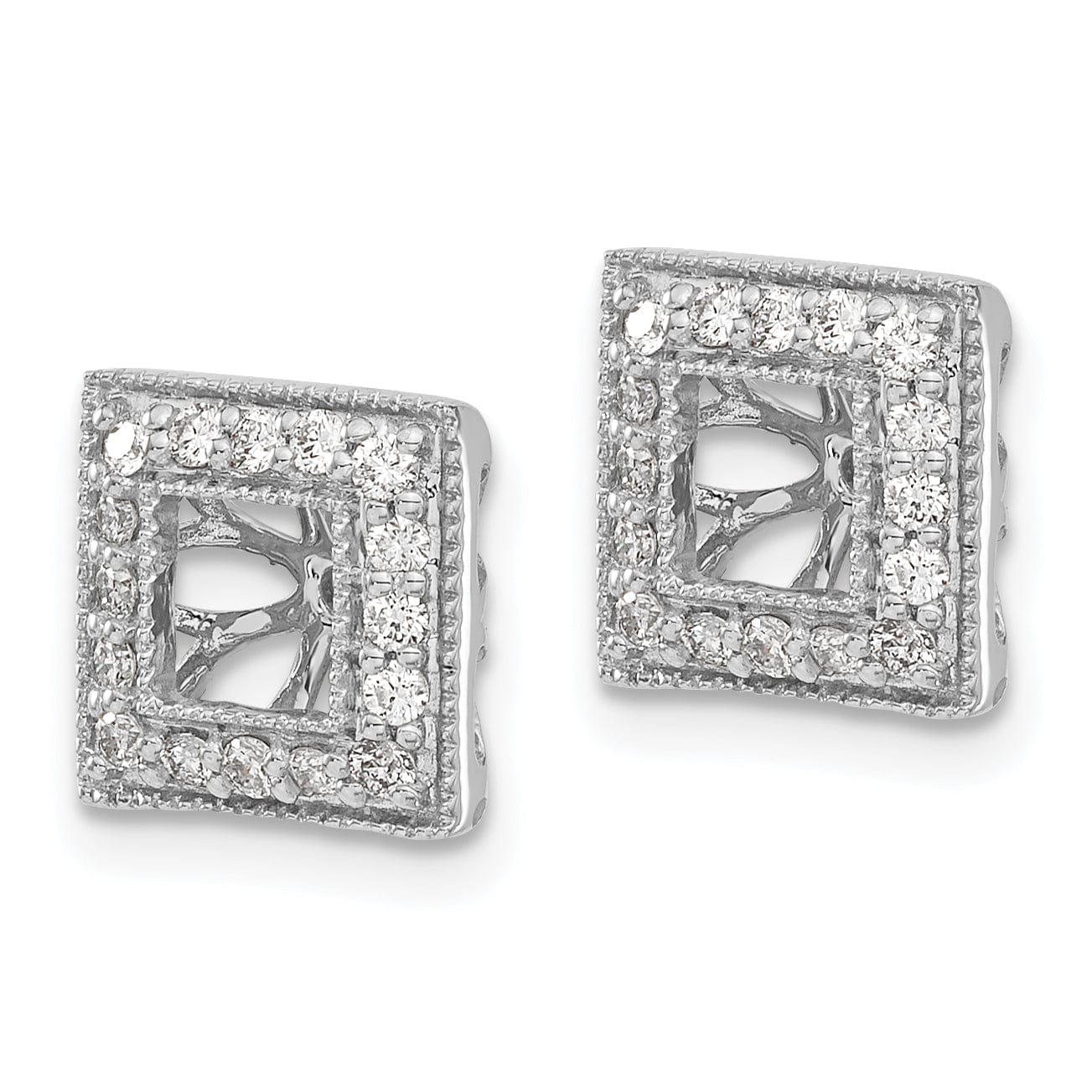 הגבילו את אוסף התכשיטים שלכם עם מעמדי עגילים מרהיבים אלה מזהב לבן 14K עם יהלום מרובע במשקל 1/3 קרט. מעוצבים מזהב לבן 14K מלא ומלוטשים להשלמת מראה זוהר, מעמדי העגילים הללו כוללים שמונה יהלומים נוצצים המוסיפים נגיעה של אלגנטיות לכל לבוש. עם משקל של 1.66 גרם וגודל קומפקטי של 10 מ"מ על 10 מ"מ, הם נוחים ללבישה ומושלמים להדגשת העגילים האהובים עליכם. אידיאליים לאירועים מיוחדים או לזוהר יומיומי, מעמדי העגילים הללו הם תוספת נצחית לאביזרים שלכם.