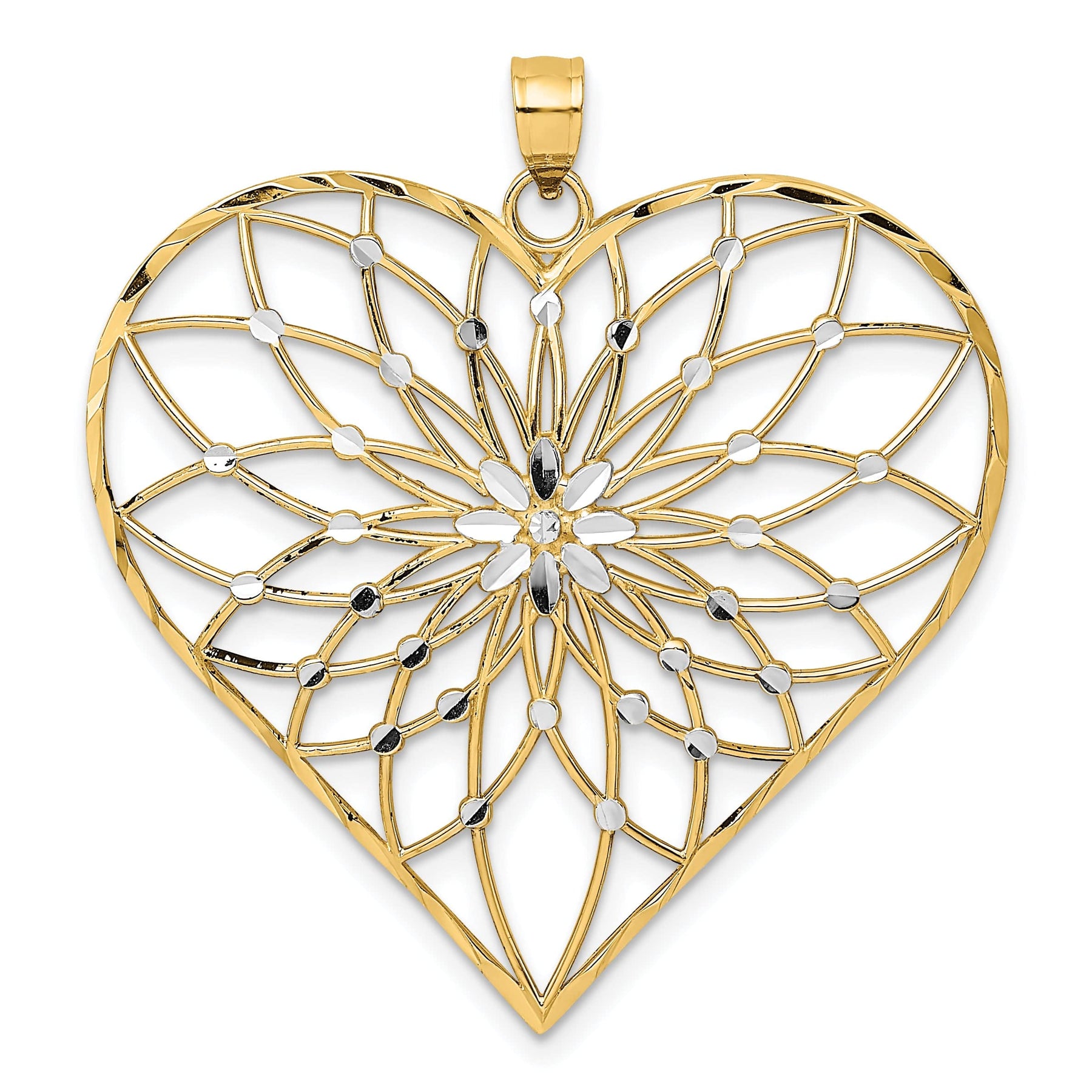 בין אם תלבש אותו לאירוע מיוחד או כתכשיט יומיומי, תליון הלב הגדול מפיליגרן בעיצוב יהלום עם רודיום לבן מזהב צהוב 14K ימשוך תשומת לב וייצור רושם מתמשך. הוסף אותו לאוסף התכשיטים שלך היום ותחווה את היופי והאלגנטיות של הפריט המרהיב הזה.